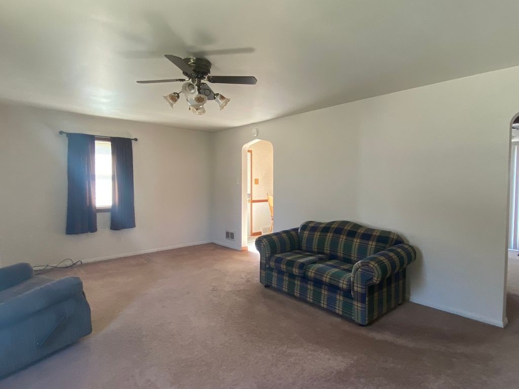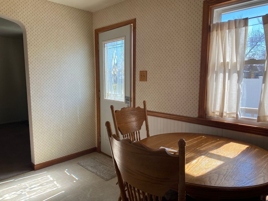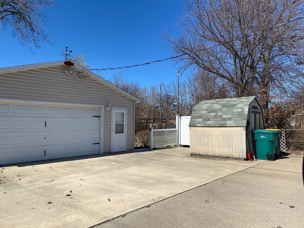 Charming and well-maintained three-bedroom, one and a half bath home offering comfort, space, and great features throughout! This home welcomes you with a large, light-filled living room highlighted by a beautiful picture window, bringing in plenty of natural light. Beneath the carpeting you'll find hardwood flooring that runs throughout the home. The home features three bedrooms, each with ample closet space, and one bedroom includes sliding doors leading directly to a concrete patio, perfect for relaxing or entertaining outdoors. The partially finished basement expands the living space with a family room and bar area, plus a half bath with toilet and shower for added convenience. The 21/2-car detached garage, built in 2004, provides excellent storage and includes pull-down attic stairs for easy access to additional space. Major updates include windows that tilt in for easy cleaning, new interior doors, circuit breakers a gas forced-air furnace with central air, furnace (approx. 2010), and gutters replaced in 2020. This home offers plenty of natural light, and great storage throughout. All appliances will remain, making this a move-in ready opportunity you won't want to miss! Yard is neatly landscaped. There is a shed for even more storage. Then vinyl fencing ads privacy to your backyard.
