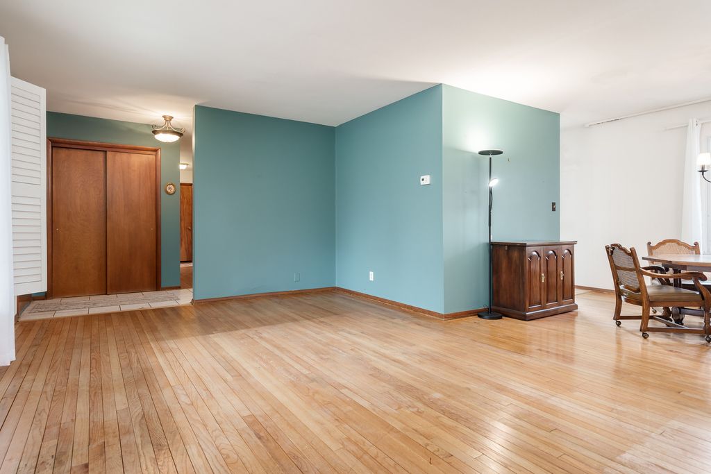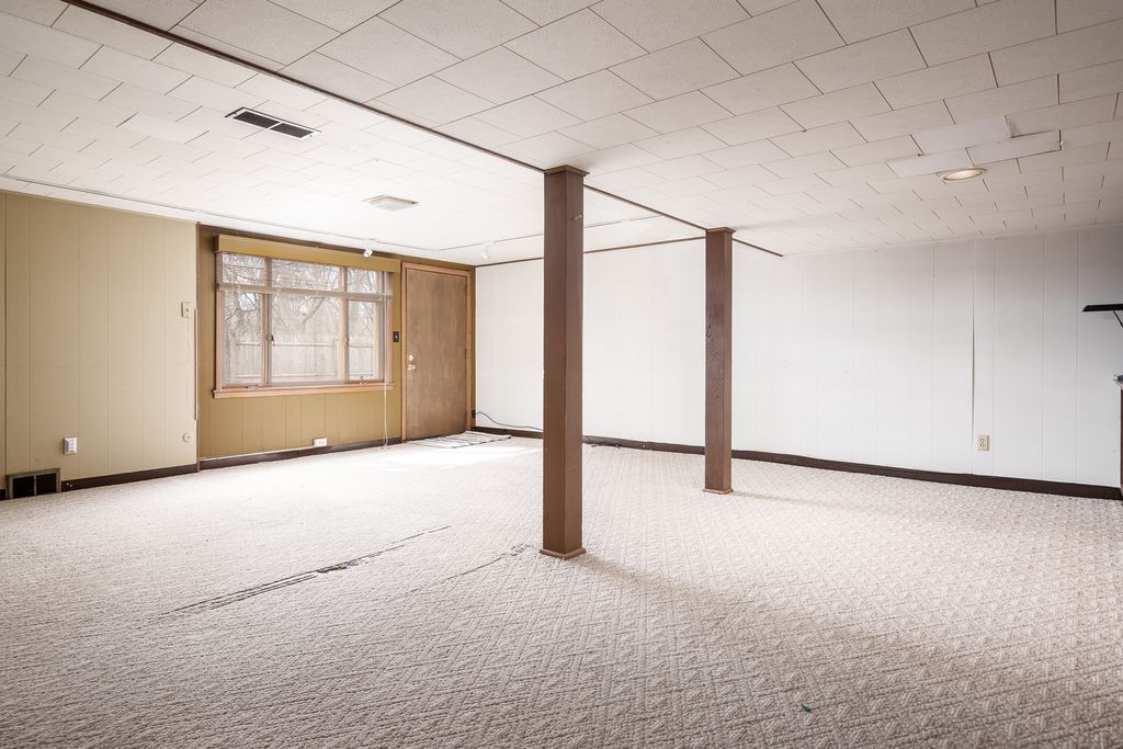 Solid, well-maintained ranch home in a great Rockford location with county taxes. This home offers a large living and dining area with hardwood floors and great natural light. The kitchen sits just off the dining space and opens to a large deck, making it easy to step outside for grilling or relaxing. One standout feature is the oversized deck, accessible from both the kitchen and the primary bedroom, overlooking the backyard and mature trees. The main level offers comfortable bedrooms with hardwood floors and good closet space. The main floor full bath is accessible from the primary bedroom and through the 1/2 bath in the hallway. Downstairs, you'll find a fully exposed walkout basement with a huge rec room, built-ins, and plenty of room for entertaining, hobbies, or additional living space. With the walkout and large windows, the lower level brings in great natural light and feels open and usable. The backyard offers plenty of room to spread out and enjoy the outdoors, and the walkout basement adds even more flexibility to the home. Great opportunity for someone looking for a solid home with space, character, and county taxes while still being close to everything Rockford has to offer.