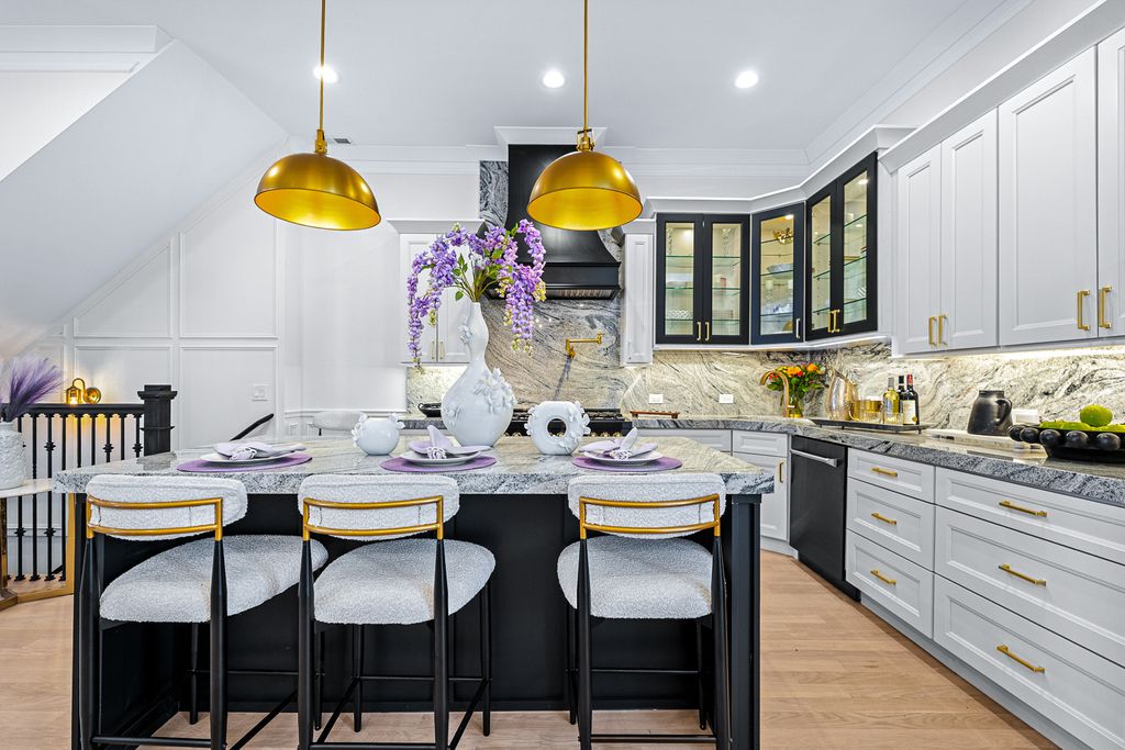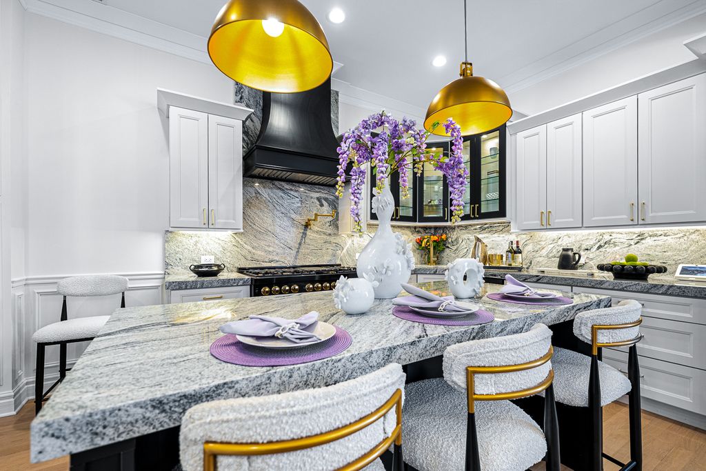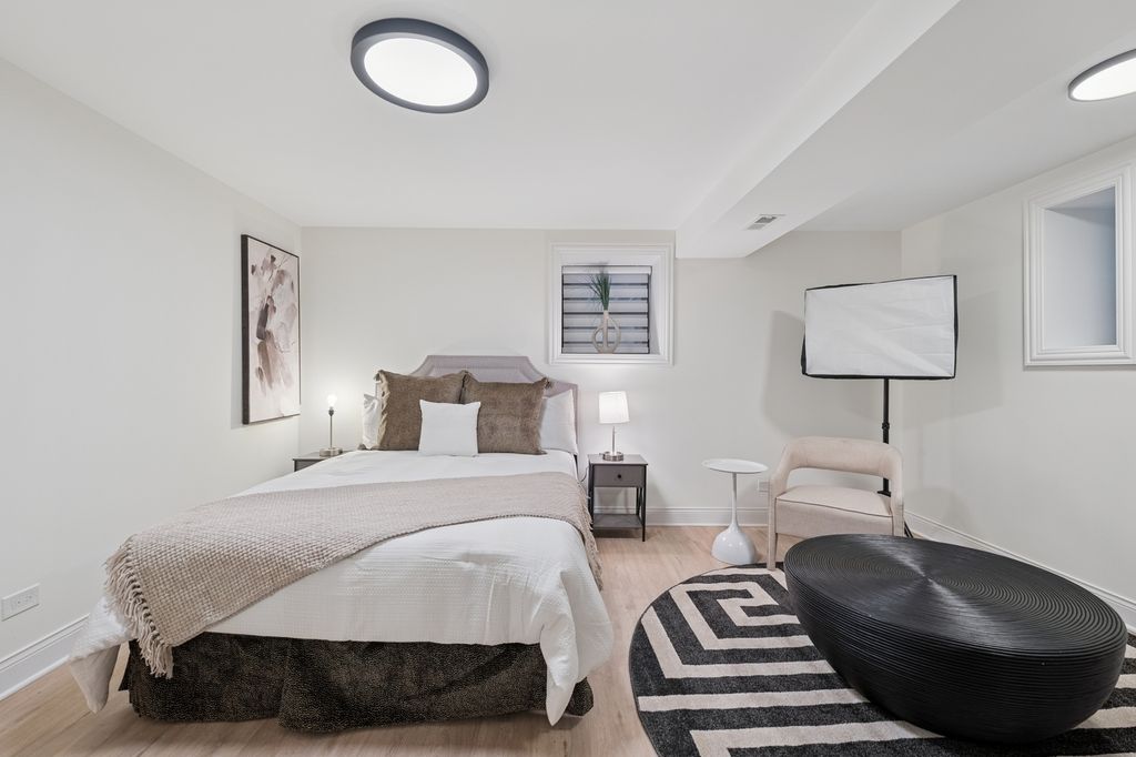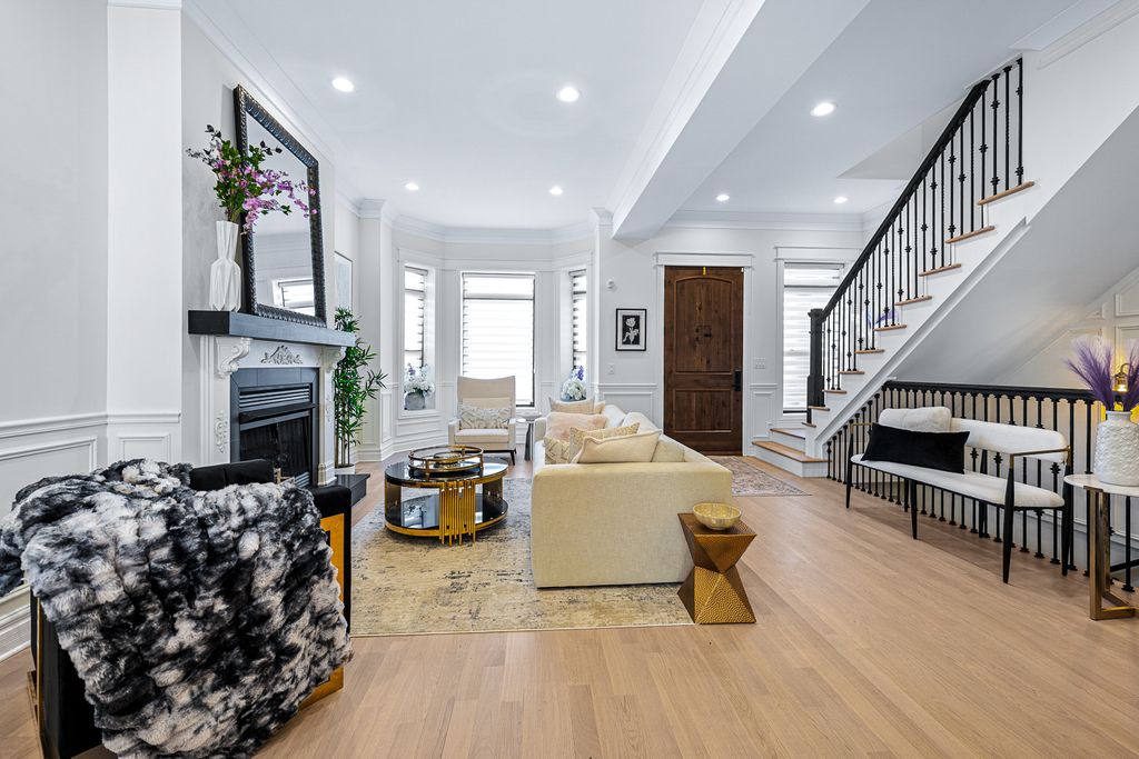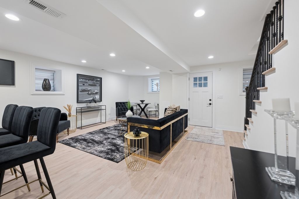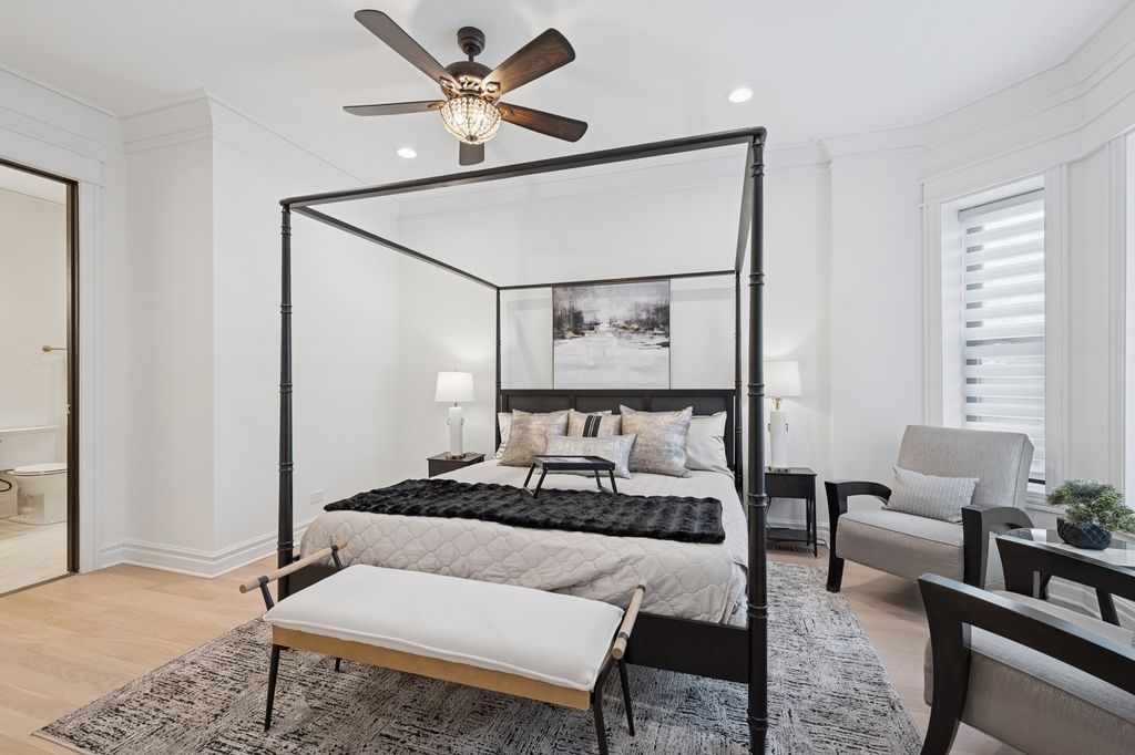 Welcome to The Oakwood Mansion. A Beautiful Historical 1881 Chicago Bronzeville Landmark Greystone. Walking distance to the shoreline of Lake Michigan. Featuring a 5 bedroom 4 bathroom and One of a Kind 6 car heated garage/party room with EV charging . Grand scaled with distinguished opulent finishes and high end amenities. An Absolute Utter Brand New Renovation throughout. This Home exudes quality with exceptional craftmanship. Walk up to this all natural Lime Stone Home with the original built-in mascarons embedded in the stone and iron railings. The Architectural history will awe you as you walk up to absorb the meaning of "GRAND". Exhale in this Urban dream. This home boast High Ceilings Custom 12 foot entry door and 10 ft interior doors. Large ceremonial traditional Black windows with custom blinds, Moldings and trim are handcrafted with unique detail throughout. White Oak hardwood flooring on the first and second level. Oversized designed fireplace decaled with style. Beautiful double stair cases will capture your eye for style. The Kitchen marries royalty with modern Gold vintage finishes with the oversized island crowned with Italian stone thick counter tops and engaging corresponding back splash. Custom white and black onyx colored cabinetry brings a decor of elegance. Top of the Line Black Stainless Steele and Gold Autograph series double oven commercial stove sitting below a grand pot filler accompanied by refrigerator, microwave drawer and dishwasher. The First floor bedroom or office presents convenience with a stylish vintage bathroom ready to receive guest. The second level cradles a gorgeous primary suite with natural lighting, walk in custom closet and an ensuite fit for a queen with double sinks separate shower and soaker tub. All bedrooms are spacious with closets that have been designed for complete organization. The lower level is perfect for entertaining and lounging with a custom wet bar, a full bath and extra bedroom coupled with a front and back entrance and exit. This Mansion would not be complete without it's open breezeway deck and roof top paradise with a custom pergola. Saving the best for NOW! Drive into your 6 car custom heated garage large enough for your fancy cars and party pleasures. 5 minutes from downtown Chicago where there's plenty of shopping and restaurants, close to trains, public transportation, walking trails and bike routes. Lusso Luxury is awaiting to be called your Home. Schedule your Private showing today.