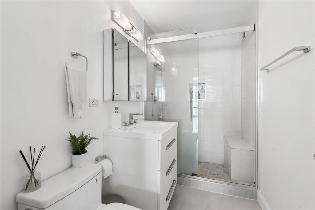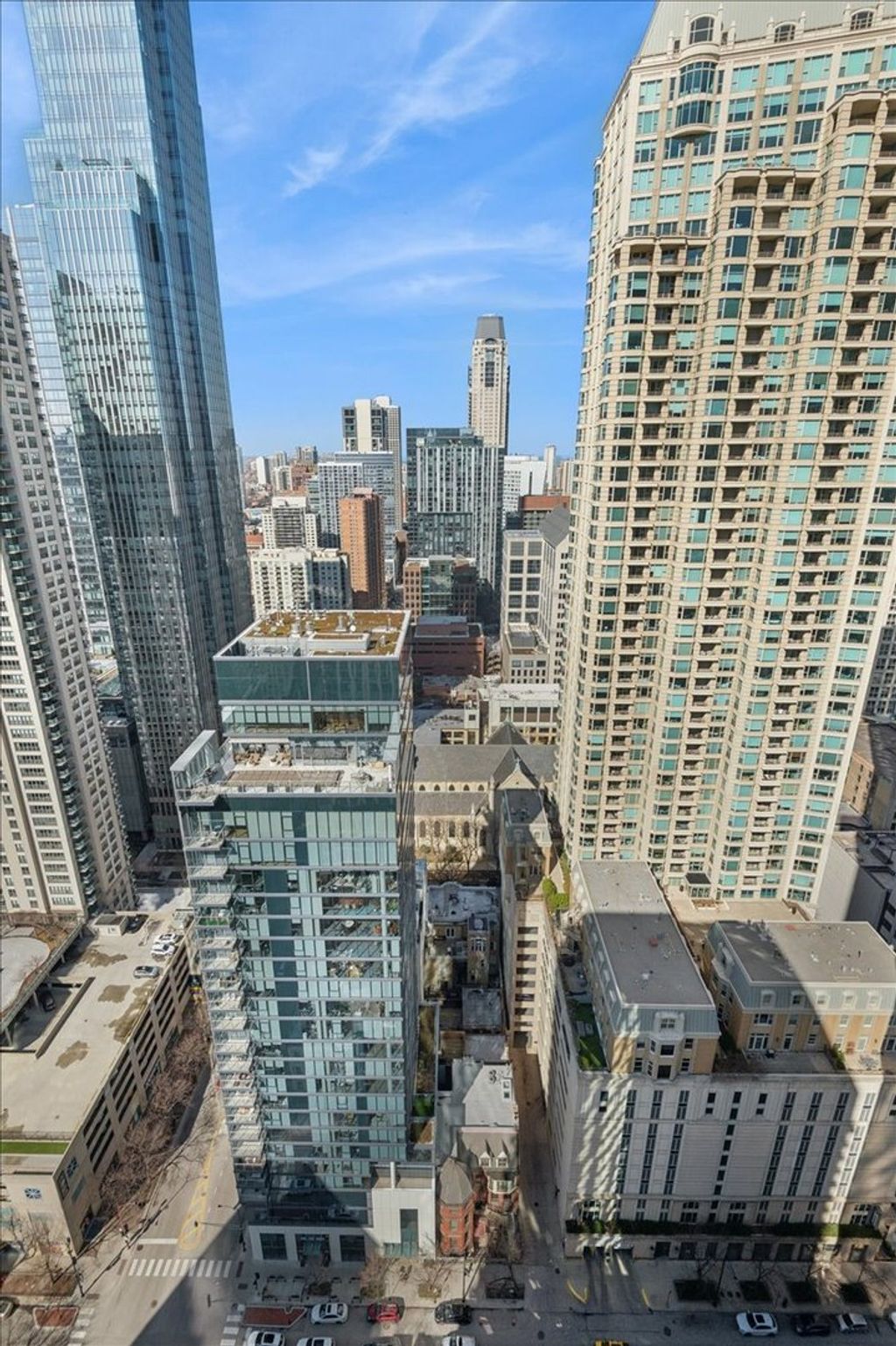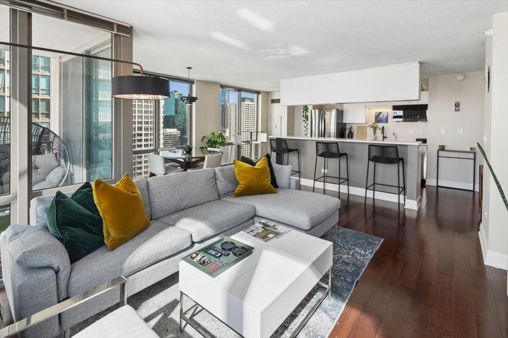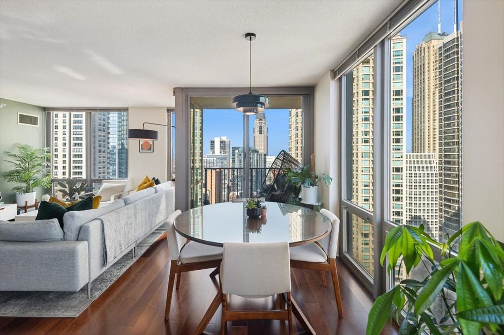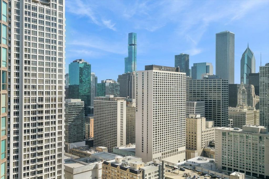 Extremely Rare CORNER 1 Bedroom, 1 Bathroom with a Private Balcony in the Heart of the Cathedral District in River North! Only About a Dozen Corner 1 Bedrooms in the Building and this is 1 Floor Below the Penthouse Floor. High Floor Condo with Floor-to-Ceiling Windows and Expansive North East City + Lake Views. Wide Open Floor Plan Features Dark Wide Plank Hardwood Floors, Generous Sized Living Room with Separate Dining Room, Open Kitchen and FULL SIZE In-Unit Laundry. Kitchen with Ample Storage Features Sleek Quartz Counters, Newer Stainless Steel Appliances Including Brand New Dishwasher (Oven is Only Original Appliance), White Cabinetry & Large Island Open to Living Room and Great for Entertaining. Huge Living Room with Stunning City Views and Adjacent Covered Balcony Off of the Separate Dining Room. Expansive Bedroom Features Huge Walk-In Closet and 4 Years New In-Unit Washer/Dryer. Additional Storage Space Included. Assessments Include EVERYTHING Except for Electric - Heat, AC, Water, Gas, Cable, Internet & All Amenities Included. Full Amenity Building Includes a 24-Hour Doorman, On Site Dry Cleaner, Huge Rooftop Gym, Newly Updated Rooftop Sundeck with Gas Grills & Breathtaking City Views, Rooftop Party Room & On-Site Management & Maintenance. Amazing Building in Phenomenal Location within Walking Distance to Lake, Dining, Shopping, Nightlife & Public Transportation.