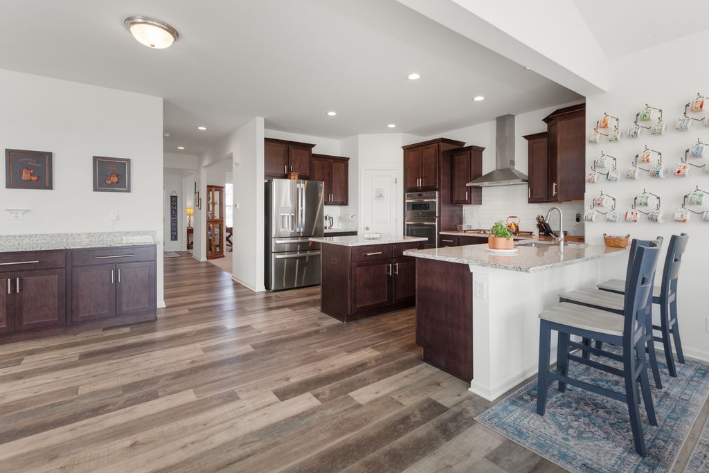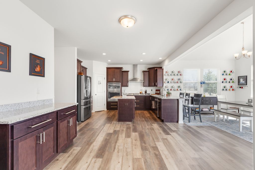This lovely home is a GREAT VALUE if you are looking at newer construction. It is a beautiful 2 story Fordham 2 model built by William Ryan. It sits on a 1/4 acre lot with beautiful views and sunsets! It has 4 bedrooms, and 5 baths ~ fully finished walkout basement with private entrance which one could use as an IN-LAW-SUITE or possible income. The first floor has an open floorplan with upgraded gourmet kitchen, morning room addition, office/den. The second floor has 3 nice-sized bedrooms with a master suite, walk-in closet and hall bath. There is a walkout basement with a private entrance, fully equipped kitchen, bedroom, utility room, 1.1 baths and rec room with an extra space which could be another bedroom. The home boasts a 3 car garage, dual/zoned heating, and a lovely, private backyard with newer paver stone firepit and a new custom front stoop/porch on the front of the home. Shows like NEW! Total square footage is 2400 on the first two floors and the walkout basement is another 1000 square feet of finished living space. This is a very special home and has unusual living amenities for your special needs in perfect condition! Excellent schools! Walking distance to historic downtown Hampshire!