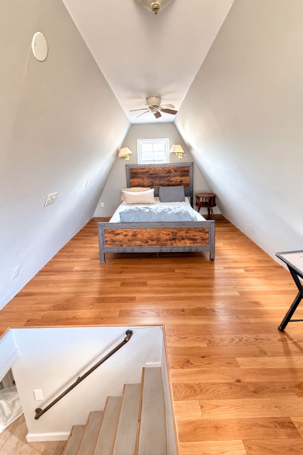 Ideal weekend escape with the hard work already completed. This Aframe offers a cozy living room with a bedroom upstairs. The open living/dining area opens to a rear deck through patio doors, overlooking a large yard-perfect for campfires. The property includes a gently flowing stream and a garden shed. Sold as-is