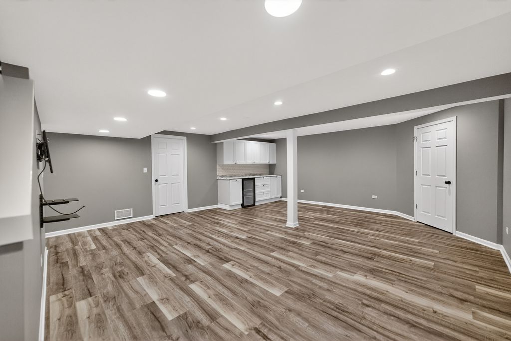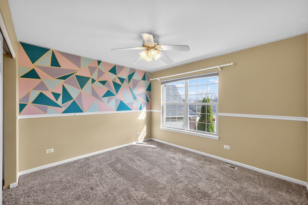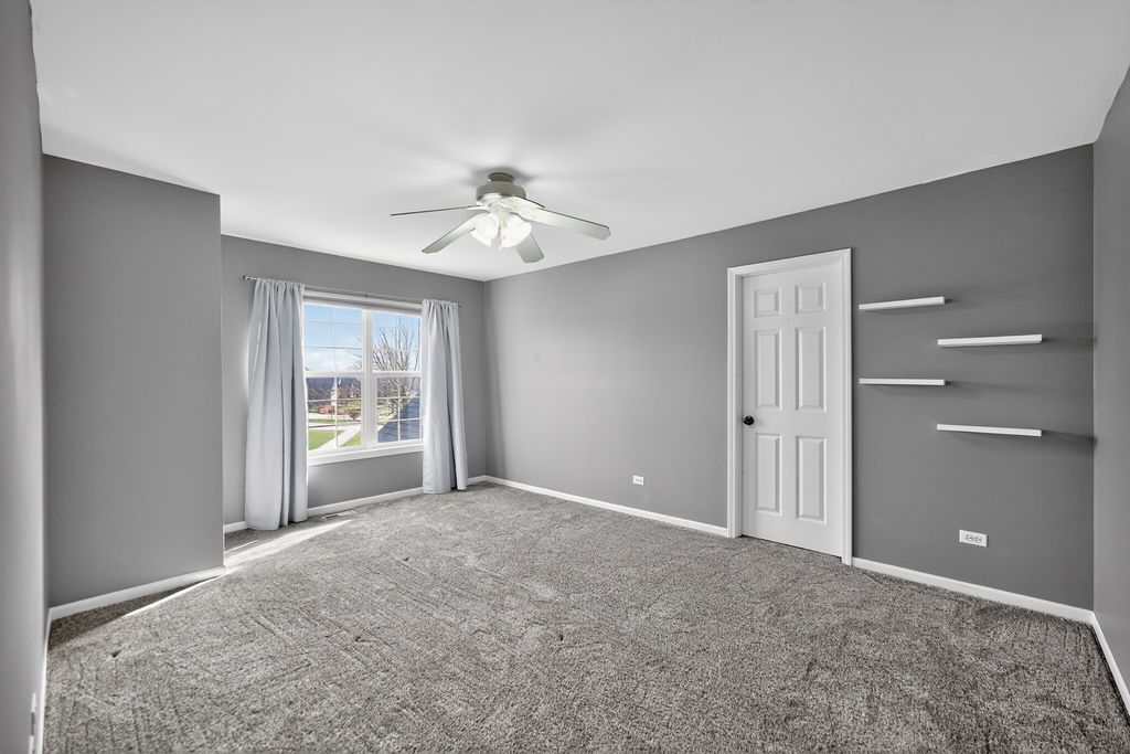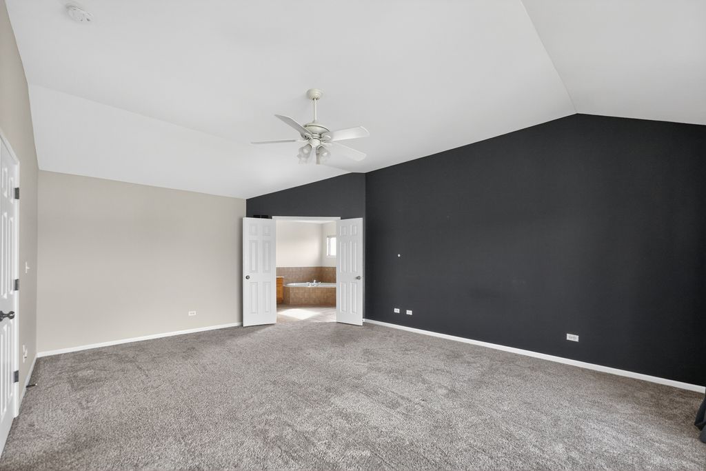 This stately five bed, four bath home offers room to roam with approximately 4,000 square feet of living space across three levels, set on a waterfront lot. An open floor plan and grand entry foyer with vaulted ceilings set the tone. The large eat-in kitchen features a dedicated dining area, task desk, and island, with additional flexibility provided by a separate dining room and formal living room. A spacious family room with a wood burning fireplace anchors the main level, while a generous mudroom with washer and dryer adds everyday convenience. A main floor bonus room offers flexibility for a home office, playroom, or potential sixth bedroom. Upstairs, the primary suite is perfectly positioned to capture serene pond views, creating a true retreat. The en suite bath features a soaking tub, separate shower, and dual vanities with individual sinks, offering both space and privacy. Three additional bedrooms are generously sized, each with ample closet space and abundant natural light.The newly finished basement creates a full additional living suite, including a fifth bedroom, a full bathroom with a large shower, a dedicated media room, and a recreation space designed for gathering and everyday use. A separate storage room with built-in shelving provides ample space for seasonal decor and hobbies. Outdoors, a brick paver patio and new sliding glass doors open to peaceful pond views with waterfront access, creating a natural extension of the living space. Two separate invisible fences in the front and back yards provide added convenience for pets. A three car garage offers space for vehicles, storage, and hobbies, while established trees and perennial landscaping surround the home. Located in the tranquil Bridges of Rivermist neighborhood, this home offers a quiet setting while remaining close to the hospital, shopping, local parks, and Gwendolyn Brooks Elementary, with easy access to I-88 for commuting. Welcome home!