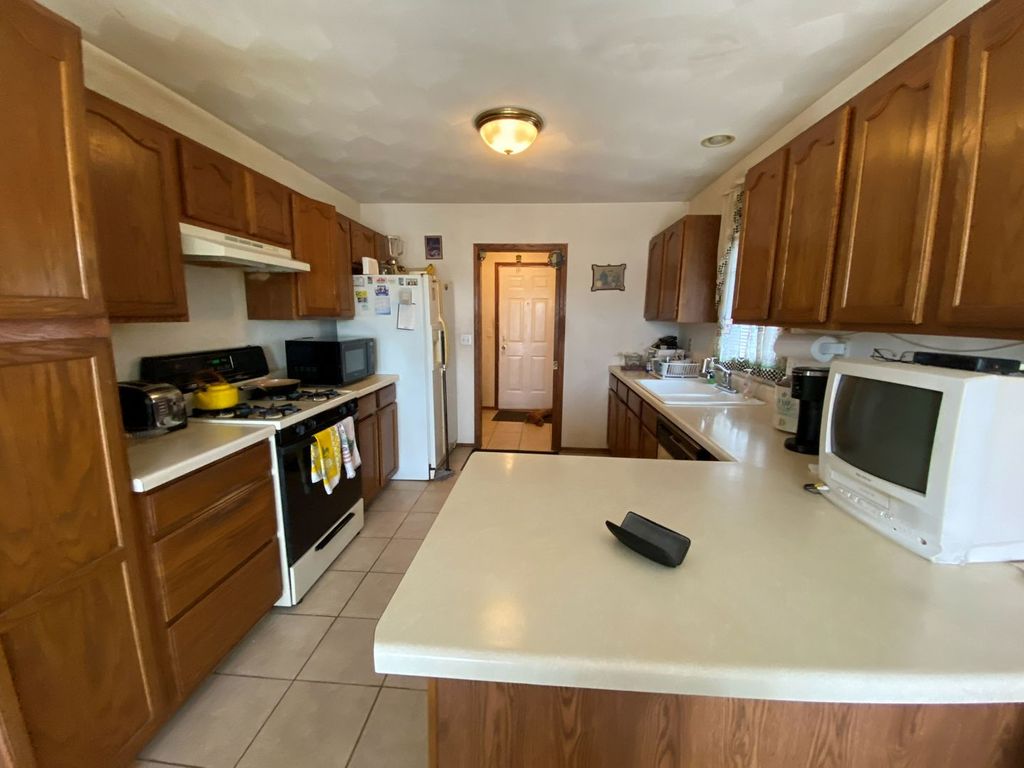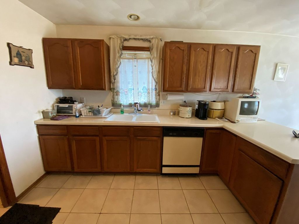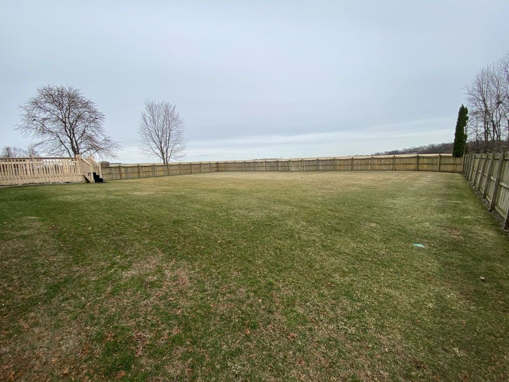 Spacious ranch home with 3 bedrooms, 2.5 bathrooms and attached 2-car garage. This home features a welcoming covered front porch, bright living room with fireplace, and an eat-in kitchen with oak cabinetry, peninsula seating, and plenty of counter space. The primary bedroom offers excellent space along with a walk-in closet and private bathroom. Main floor laundry adds convenience. The finished lower level offers even more living space with a large rec room, bar area, half bath, and extra storage potential. Outside, enjoy the views from the fenced yard and deck. A solid home with tons of space, a functional floor plan, and room to make it your own. No FHA/VA, sold as-is.