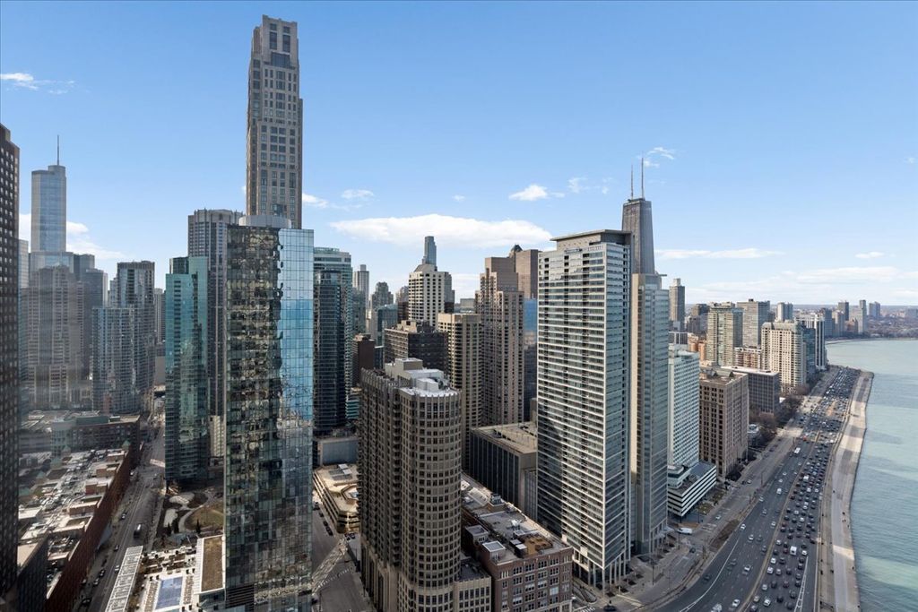 Magnificent Views!!! Come home to this amazingly updated LUXURY DESIGNER HOME. This 2 bed + 2 bath home located on the 45th floor is bright & airy with rare endless LAKE & CITY VIEWS from every window, and breathtaking sunsets with the city skyline shining through the night. This spacious floor plan features hardwood floors, a large living room perfect for entertaining or a zen retreat. A stunning chef's kitchen with custom cabinetry, large waterfall island, and stainless steel appliances, which flows seamlessly from the dining room. A large guest bedroom that can also become an in home office. The guest bathroom was recently renovated with all high end finishing to the smallest detail. A huge primary bedroom with a spa-like bath ensuite. ALL remote control modern window treatments, Convenient in-unit laundry. Abundance of closets throughout. Energy efficient tankless water heater. Storage locker included. The living room attached TV, sound bar, and TV stand are included. Walk or bike along Lake Michigan, soak in the sun on Ohio St Beach, enjoy restaurants, and shops on Michigan Ave, easy public transportation, Convenient grocery store all with-in steps from your door. This is truly a full amenity building with 24-hr door staff, health club, indoor & outdoor pool, 2.5 acre park with a BBQ area, business center, and much more. Pet friendly building. Parking available. Seller is a Lic Real Estate Broker.