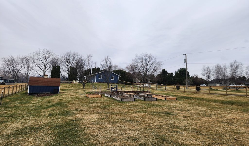Charming and well-maintained 3 bedroom, 2 full bath ranch home situated on a spacious 1-acre corner lot. Large eat-in custom kitchen with sliding doors that open to an outdoor deck and patio. The family room offers a cozy freestanding gas fireplace and additional sliding doors that lead to an enclosed porch. First-floor laundry area is conveniently located in a separate closet just off the garage, with additional washer and dryer hookups available in the basement if preferred. The full basement has been freshly painted and reconfigured, providing a clean, versatile space with ample storage and potential for additional living areas, a workshop, a hobby space, or recreation room. Numerous recent updates. In 2022, new windows and siding were installed. In 2023, the kitchen, dining area, and family room were completely remodeled, along with new flooring in the living room, kitchen, family room, and hallway. That same year, the outdoor shed was resided and painted. The shed also features electric service, with convenient water access located nearby. New backyard patio and garage apron poured in 2024. In 2025, additional upgrades included a new hot water heater, a newly built back deck, and a fence. In 2026, new outdoor carpet was installed on the porch and an additional deck was added off the porch. The property also offers wonderful outdoor features for gardeners and fruit lovers, featuring seven raised garden beds (three beds already producing established strawberries), six young assorted apple trees expected to begin bearing fruit soon, and four blueberry bushes.