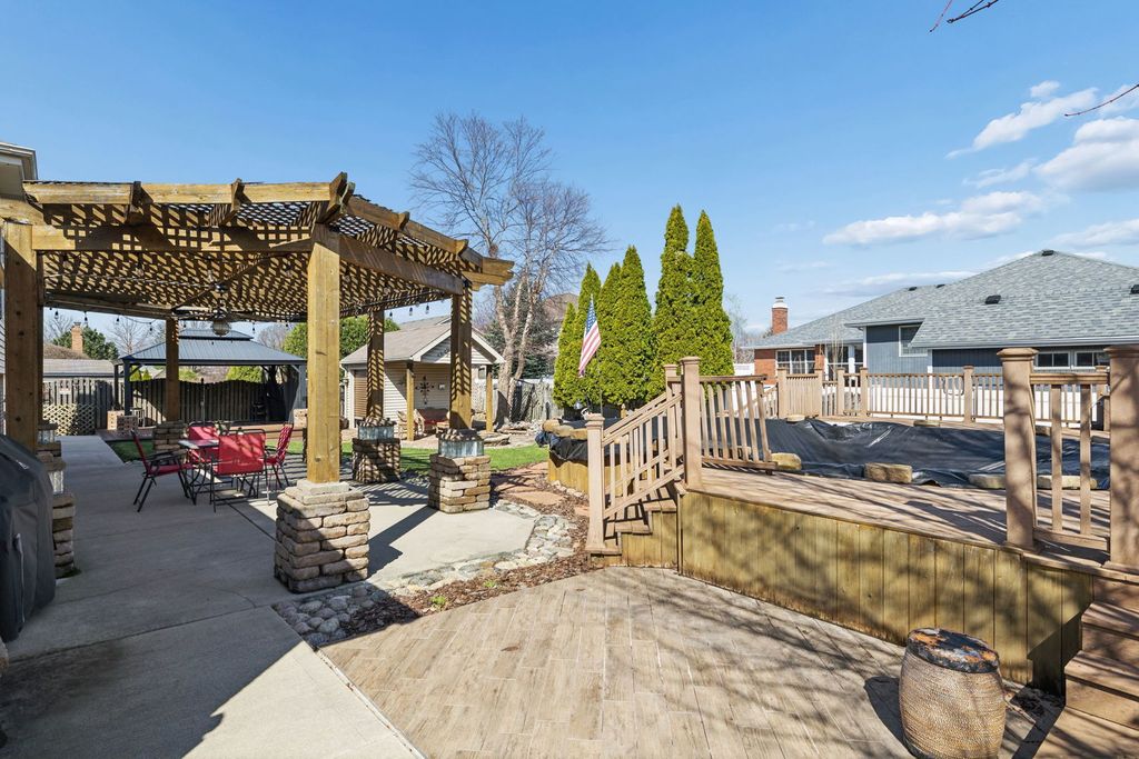 Nestled within the sought-after Palmer Ranch subdivision of New Lenox, this exceptional custom split-level with sub-basement stands in a class entirely its own. In a neighborhood of distinguished homes, your new home is a true one-of-one design. Thoughtfully maintained, beautifully updated, and brimming with the kind of character and versatility that simply cannot be replicated. From the moment you arrive, the welcoming front porch sets a tone of warmth and refinement. Step inside and you're greeted by soaring vaulted ceilings on the main level, where rich Italian porcelain tile flooring flows throughout, lending an air of timeless elegance to every room. A classic fireplace anchors the living space with comfort and sophistication, making this home as inviting as it is impressive. The kitchen is a study in thoughtful renovation. Refreshed white cabinetry pairs beautifully with gleaming granite countertops and a coordinating granite backsplash, while under-cabinet lighting casts a warm glow over the workspace. Stainless steel appliances complete the ensemble, delivering a kitchen that is both stylish and fully functional. Every bathroom in the home has been meticulously updated with new flooring, fresh vanities, updated lighting, and lustrous quartz countertops. The dining room is a true showpiece, featuring a custom-built-in cherry library with fluted pilasters, lighting, and pull-out drawers. A one-of-a-kind architectural detail that adds warmth, function, and unmistakable character. Upstairs, premium Mannington Andura 20-mil glue-down vinyl flooring delivers the look of luxury with the durability of an industry-leading product, while the lower level and basement carry a similar high-end Mannington Andura flooring throughout for a cohesive, polished feel at every level of the home. No detail has been overlooked. Over $10,000 in designer window treatments grace every room, including Hunter Douglas motorized Pirouette shades and motorized Luminette shades, Norman day/night shades, and custom shutters on the patio doors and front entry. Whether you prefer sunlit spaces or softened ambiance, the touch of a button sets the perfect mood. What truly sets this home apart is its unparalleled flexibility. The finished sub-basement has been thoughtfully designed with related living in mind, complete with a custom private exterior entrance. Offering the independence and privacy that multi-generational families deserve. Whether accommodating in-laws, adult children, or extended family, this space delivers a seamless blend of connection and autonomy. Outside, the fully fenced backyard is a private retreat designed for every season. An above-ground pool with a maintenance-free Trex deck invites summer relaxation, while a rear patio crowned by a beautiful pergola creates an ideal setting for al fresco dining and entertaining. Gather around the built-in fire pit on cool evenings, or spend a quiet afternoon enjoying the tranquil fish pond. Thoughtful touches that elevate this backyard from functional to truly extraordinary. A second covered patio provides even more outdoor living space, and the property offers serious storage and workspace to match its beauty. A dedicated side drive alongside the garage provides additional parking and a large 10x30 shed, while the second shed has a 10-foot overhang and roll-top overhead door, which is a dream for the hobbyist, contractor, or anyone who demands serious workspace. The attached heated 2.5-car garage completes the picture of a home that has truly thought of everything. All of this is set within one of Will County's fastest-growing and most desirable communities. Residents enjoy top-rated schools, easy access to I-80, I-355, the Metra, and a vibrant village life complete with the Old Plank Trail, Crossroads Sports Complex, Sanctuary Golf Course, and beloved community events like the Summer Concert Series and Christmas in the Commons. This is an opportunity to own something truly special.