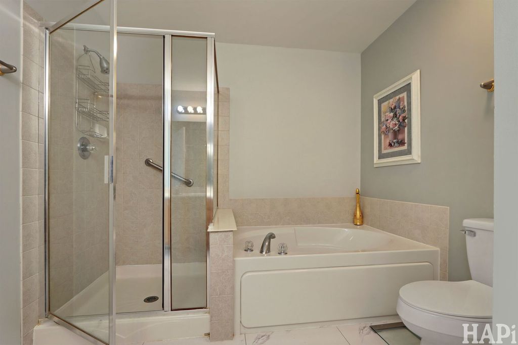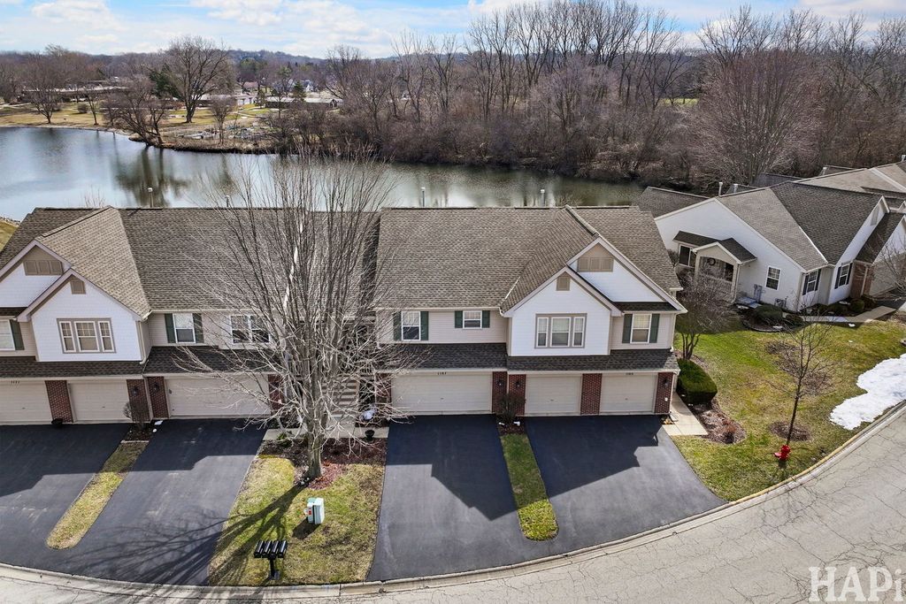 Escape to the serenity of this beautiful Woodland Green lakefront townhome offering two bedrooms and 2-1/2 baths. Enjoy an open-concept layout with hardwood floors throughout the kitchen with large pantry closet, eating area, spacious dining room, and airy living room that also features sliding glass door to the lake front balcony with stunning views. The living room, primary suite, family room, and second bedroom also feature peaceful lake views. The spacious primary suite boasts a walk-in closet and a full bath featuring a soaking tub and separate shower. Entertain or relax in the expansive walkout lower-level family room features sliding glass door access to the 21x15 brick paver patio perfect for quiet evenings by the lake and offering tranquil lake views during the day. The lower level also includes the second bedroom, full bath, laundry room, and access to the attached 20x20 garage. Most furnishings are available if buyer is interested.