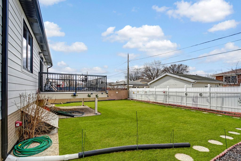 Come check out this only four-years-young home offering the look, feel, and quality of brand-new construction. Its modern finishes and striking curb appeal with custom-colored brick, bold black-framed windows, and matching black gutters create a sleek contemporary profile that stands out from anything else on the market. The main level features a welcoming, relaxing living room with large transom windows and modern light/sandstone wide-plank hardwood flooring trimmed in classic wide baseboards, and custom recessed lighting continuing seamlessly throughout the home Three bedrooms and two bathrooms on this level include a primary suite with a walk-in closet and an ensuite bath featuring a spa-like walk-in shower with full glass enclosure, marble-look porcelain tile, herringbone accent band, upscale lighting, beautifully framed mirror, and a sleek white vanity with black hardware that delivers boutique-hotel flair. The hallway bathroom showcases designer gray subway tile in the tub/shower combo with matte black fixtures and a stylish vanity accented by a modern mirror and lighting. The chef-inspired kitchen impresses with crisp white cabinetry, black stainless-steel appliances, a massive espresso island with below counter microwave and wine cooler, quartz countertops, a designer hood, and chic tile backsplash. The spacious dining area and warm pendant lighting make it ideal for entertaining. A transom door leads to the elevated, maintenance-free deck overlooking the professionally manicured yard. An open-rise staircase leads to the expansive lower level with a large family room, luxury vinyl flooring, abundant recessed lighting, an additional flex room (ideal for bedroom or office), a finished laundry/utility area, and a modern third bathroom with frameless glass shower and marble vanity. A lofty second-level bedroom adds even more versatility. Priced below similar homes for its lucky new owner, this property offers exceptional value without compromise. Easy to show and ready for immediate closing so see it today before this custom gem is gone!