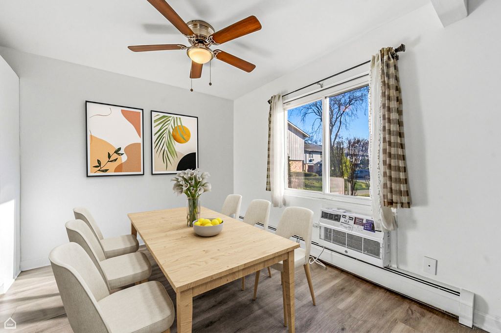 Welcome to 950 E Old Willow Road #101, which offers comfortable living, great natural light, and everyday convenience. The spacious living and dining areas enjoy pleasant east exposure, bringing in soft morning sunlight. While the primary bedroom features south exposure, creating a bright and inviting space to unwind. The home has been freshly painted throughout and includes thoughtful bathroom updates such as a new vanity and medicine cabinet. The primary bedroom offers a walk-in closet, providing excellent storage and functionality. In the kitchen, you'll find stainless steel appliances, including a new LG refrigerator, GE dishwasher, and GE gas range, along with refinished cabinetry that adds both style and practicality. Durable LVT flooring runs throughout the home, and a charming private patio with a newly installed glass sliding screen door creates a great spot to enjoy fresh air or a morning coffee. Two exterior parking spaces located just outside the unit make daily living easy. Residents also have access to community amenities, including a clubhouse, outdoor pool, and playground, perfect for relaxing or enjoying time outdoors during the warmer months. With easy first-floor access, tasteful updates, and a warm, move-in-ready feel, this condo is a wonderful opportunity for low-maintenance living in a convenient location. Come see for yourself!