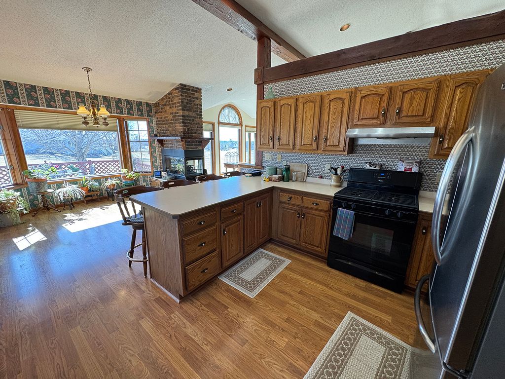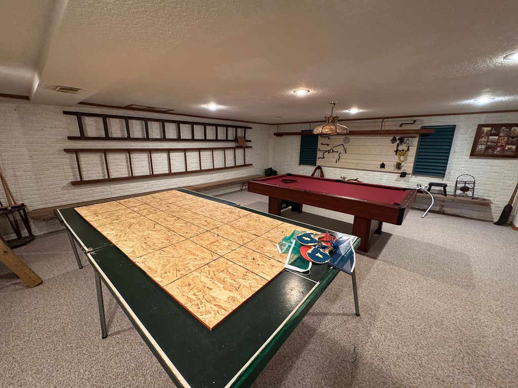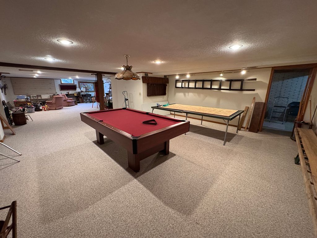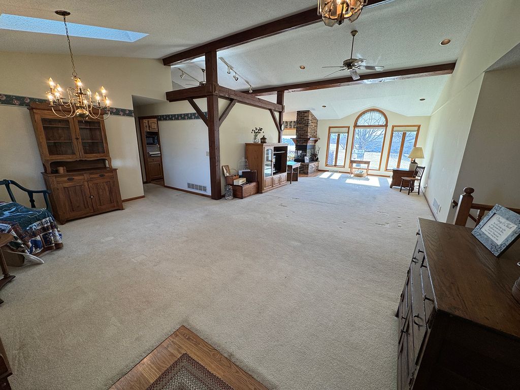 This ranch home built in 1990 located at beautiful Lake Carroll is conveniently situated near the clubhouse and golf course. This spacious home offers 3 bedrooms and 2 bathrooms on the main floor, featuring cathedral ceilings in the living room, kitchen, and two bedrooms along with authentic barn beams that add warmth and character to both the main and lower levels. The main level includes a large living room, dining area off the foyer, and a kitchen with table space, breakfast bar, and abundant cabinet and counter space. A double-sided fireplace creates a cozy focal point between the living room and kitchen eating area. A separate laundry room adds convenience. The partially finished lower level offers approximately 1,300 sq ft of additional living space including a large family/recreation room with pool table and ping-pong table included, plus two additional rooms ideal for office, hobby, or fitness pace. Recent improvements include a new roof and skylights (2024), two new garage doors (2023), water softener (2019), and water heater (2018). The home is also wired for a generator hookup in the garage. Outside you'll find a two-stall attached garage with asphalt driveway and a third rear garage door perfect for a mower, golf cart, or additional storage. Enjoy the outdoors from the rear wooden deck. There is a fishpond behind the garage. A wonderful opportunity to enjoy Lake Carroll living near golf, recreation, and clubhouse amenities. Some photos digitally altered to remove personal property. $375 buyer paid transfer at closing.