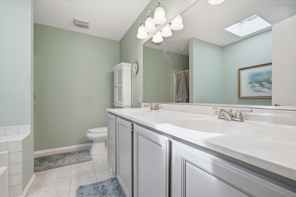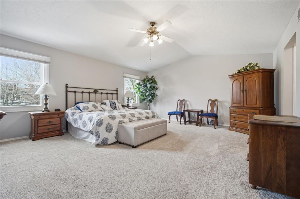 Welcome home to this beautiful 4 bed, 2.5 bath in Northpoint Subdivision! The updated kitchen features granite countertops, soft-close cabinets, pull-out pantry drawers, and stainless steel appliances creating the perfect space for cooking, gathering, and making memories. The first floor offers multiple spaces for entertaining, including a spacious sitting room and a cozy family room featuring a gas fireplace, perfect for relaxing with a good book or watching your favorite shows. Upstairs, you'll find four generously sized bedrooms along with the convenience of second-floor laundry. The primary suite features a vaulted ceiling, and the en suite bath is filled with natural light from a skylight. The finished basement adds even more versatility, offering the perfect space for entertaining, a home gym, or additional living area-plus plenty of room for storage. The backyard has an extended poured patio with a Pergola perfect for those summer nights and is outlined by beautiful landscaping, mature trees, and no backyard neighbors. Easy access to Northpoint school, Tipton Park and close to plenty of grocery stores and restaurants.
