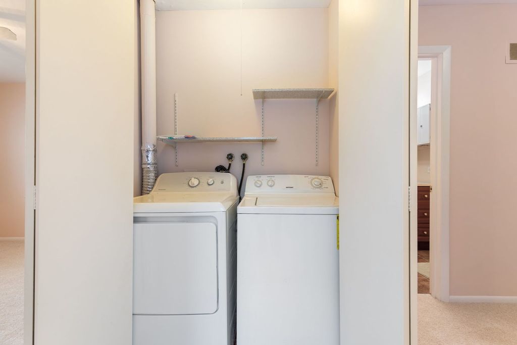 Discover this beautifully refreshed 2-story townhome overlooking a peaceful subdivision pond and swimming pool. This inviting home features 2 bedrooms and 1.5 bathrooms, thoughtfully arranged on separate levels for added privacy. The upgraded kitchen showcases new countertops and updated hardware, complemented by modern flooring throughout. Stylish ceiling fans have been installed, and the second-floor laundry is conveniently located near the bedrooms for everyday ease. Enjoy a private entrance with a concrete patio, accessible through sliding doors-perfect for relaxing outdoors or hosting barbecues. The attached garage provides direct access to the home, offering comfort and convenience during rain or snow. This move-in-ready home is beautifully updated and ready for its new owner to enjoy. Don't miss the opportunity to own this desirable Dunbar Lakes unit-schedule your showing today!