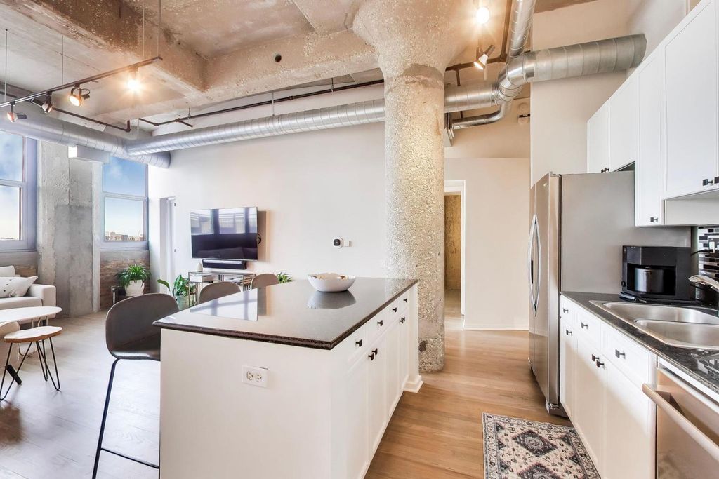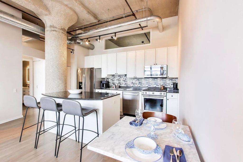 HOT RIVER NORTH- WELCOME TO DOMAIN, 900 N. KINGSBURY. This stunning, open concept, split floorplan 2-bedroom, 2-bath has a MASSIVE 30x25 PRIVATE TERRACE! This sun-filled home with large windows has been completely remodeled with designer finishes throughout. This concrete loft is filled with character including 12' ceilings, hardwood floors throughout, and even has the original mushroom columns!! Open kitchen with granite countertops, stainless steel appliances and a generous island with room for bar stools. The 750 SF OUTDOOR TERRACE is perfect for entertaining or enjoying the sun. The second bedroom is fully enclosed; both bedrooms are a great size and can accommodate KING beds! Other features include generous storage and closet space, central heat and air, and washer/dryer in unit. The monthly assessments include Xfinity high-speed internet, premium cable package, gas, and individually controlled heat, and air conditioning. Domain is a full-service building with 24-hour door staff, receiving room, and onsite management and maintenance team. The building has an exercise room, fitness center, dry cleaner, 12th floor rooftop party room, and sundeck with 360-degree city views! Storage locker included. Pet friendly - with dog parks close by. Walk to the Chicago Riverwalk, boat docks with a water taxi stop, boat slips and pontoon rentals are available! Nearby you will find Allyu Spa, Bian, Erie Cafe, Kai Sushi, Starbucks, Target, and CTA Chicago Brown Line. Deeded garage parking is an additional $30K. Taxes do not include homeowner exemption. This is a MUST SEE HOME!!