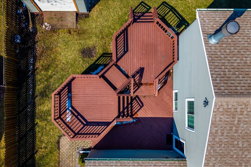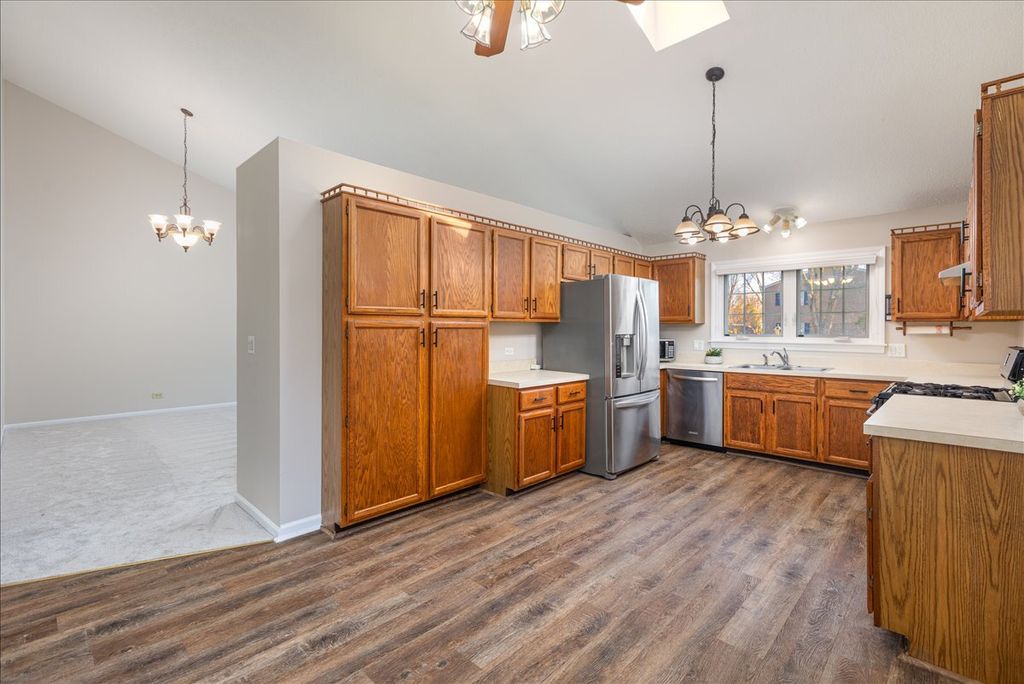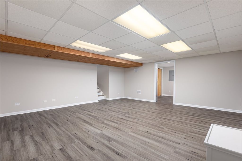 Beautifully updated home in one of the best locations in the neighborhood! This four-bedroom, two-bath home offers incredible space and functionality, featuring both a finished lower level and a finished sub-basement. In addition to the attached two-car garage, the property includes an impressive 30x13 detached garage complete with electricity and a door opener-perfect for extra storage, hobbies, or a workshop. The current owners have already completed many of the major updates, including roof, siding, gutters, and fence (all under 6 years old), NEW triple-pane windows throughout, and newer furnace and AC. Additional improvements include a newer washer and dryer and updated vinyl flooring in the kitchen, family room, stairs, and all bedrooms. Step inside to a spacious vaulted living and dining room filled with natural light and featuring new carpet. The separate eat-in kitchen includes newer stainless steel appliances and updated doors leading to both the garage and the deck for easy indoor-outdoor living. Upstairs you'll find three bedrooms, including a primary suite with cathedral ceilings, along with a full bathroom featuring a skylight. The lower level offers a large family room with a cozy fireplace, plus a utility/laundry room and a second full bathroom. The **finished sub-basement adds even more living space** with a huge game room and a versatile bonus room that would be perfect for a home office, workout space, or hobby room. Outdoor living is just as impressive with an **oversized tiered deck featuring a dedicated gas line for grilling**, making it the perfect space for entertaining. The fenced backyard backs directly to the school playground, providing open views and additional recreational space. All this in a **fantastic location within walking distance to Clow Elementary and Gregory Middle School**, and just minutes from **Neuqua Valley High School, shopping, dining, and more**.