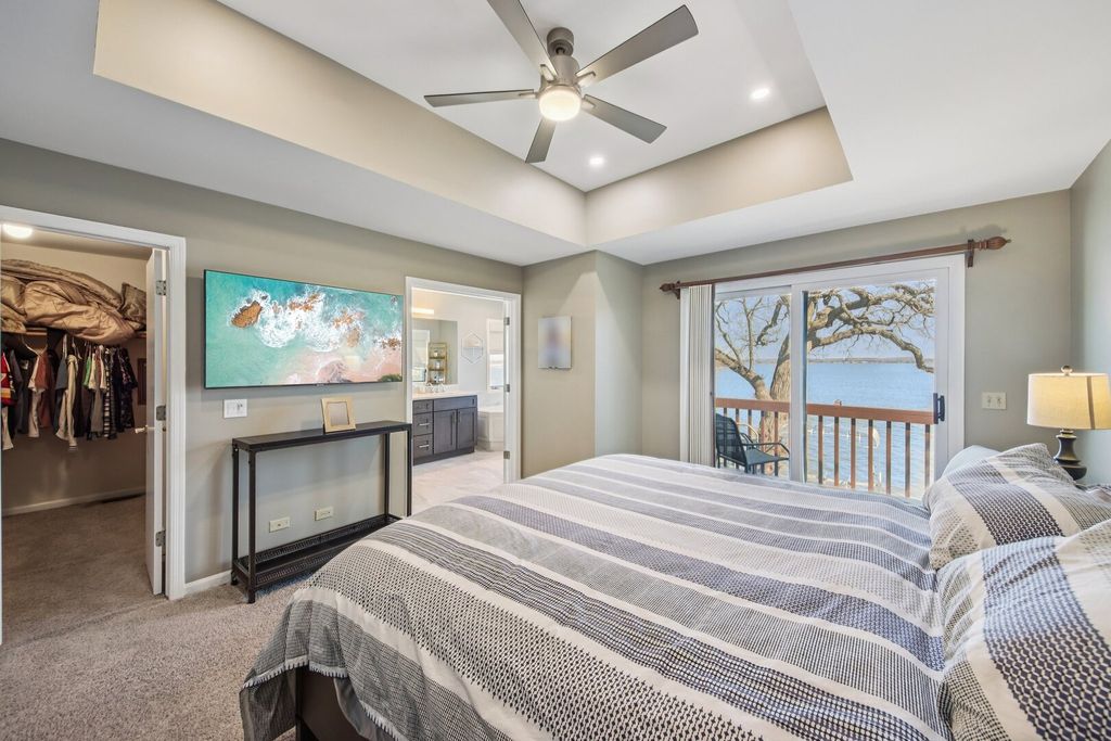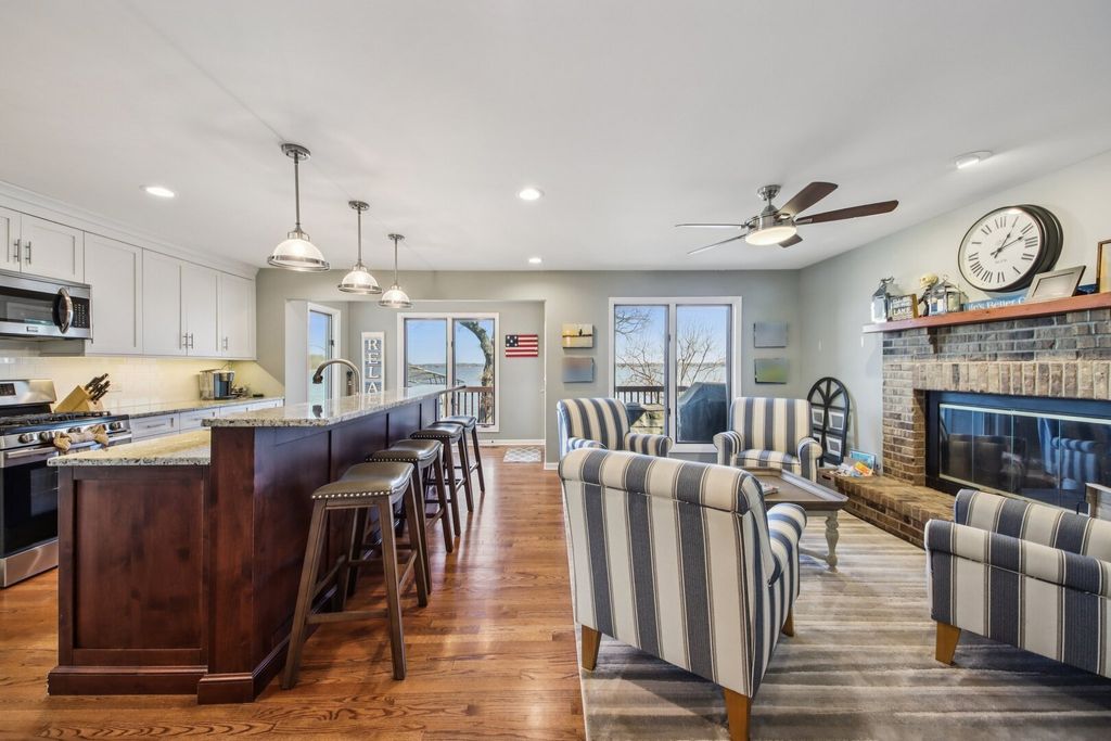 Fantastic waterfront home overlooking Mineola Bay. Professionally updated kitchen with granite countertops, S/S appliances and custom shaker cabinetry. Gorgeous, newly remodeled bathrooms. First floor den/bedroom perfect for guests or home office. Interior trim freshly painted. Brand new roof in 2025. Open floor plan with vaulted ceiling and floor to ceiling windows in the living room offers a terrific view of the water. Cozy sitting area off the kitchen with wood burning fireplace, perfect for those cold winter nights. Freshly stained deck off the kitchen is great for relaxing and entertaining. Primary bedroom has private balcony and awesome ensuite. Partially finished basement with additional storage room. Easy access to back yard from the basement rec room. Oversized 3+ car garage and plenty of space in driveway for your guests. Conveniently located to neighborhood restaurants and other local amenities. Pier and Boat lift are negotiable.