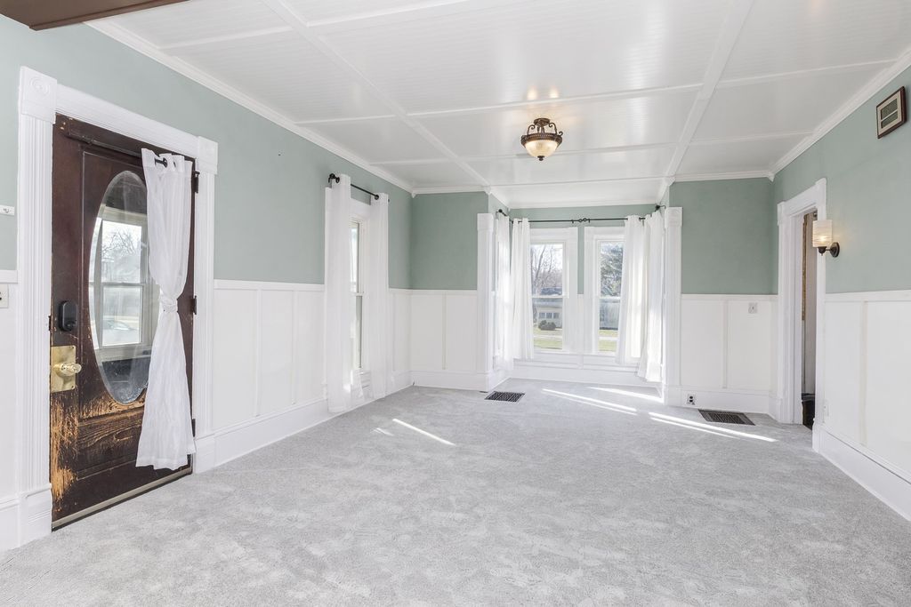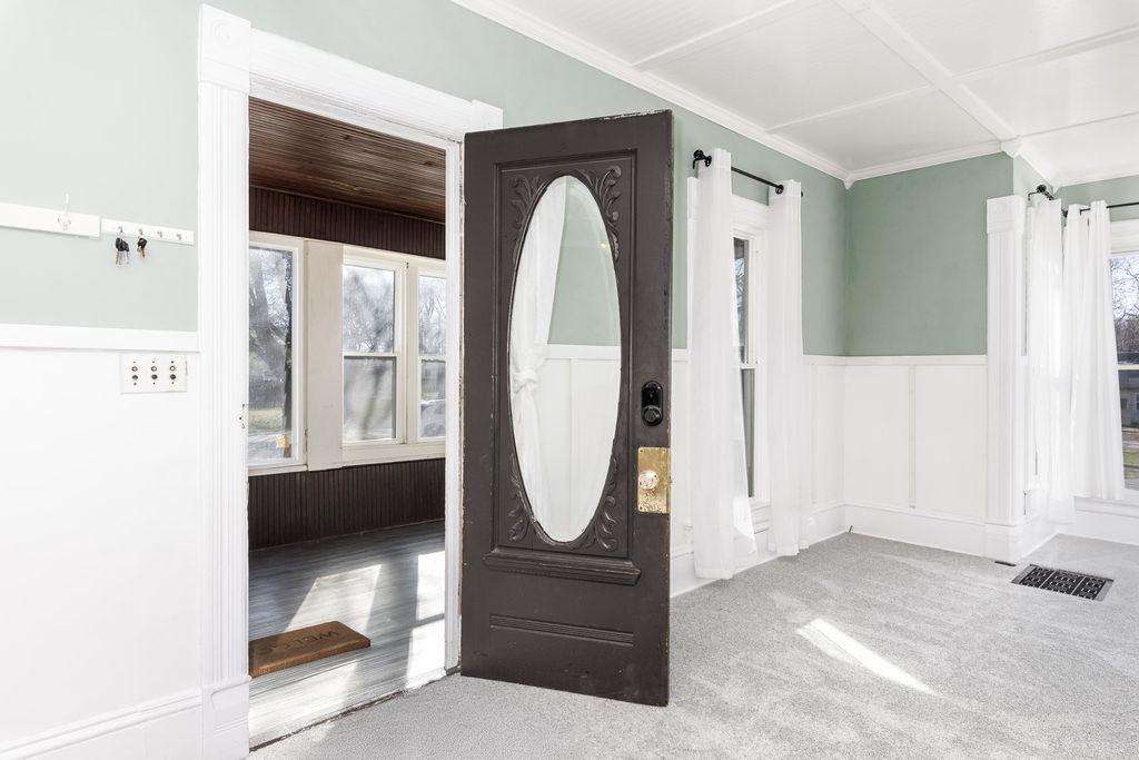 Step into the warmth and character of this inviting 2 story home offering over 2,000 sq ft of living space in a small town setting. The home features 3-4 bedrooms, including 2 tandem bedrooms that offer flexible options for a nursery, office, or additional living space. You will find 2 full bathrooms, including a recently updated first floor bath. Enjoy relaxing mornings on the large enclosed front porch or spending time in the nice sized yard with room to play, garden or entertain. Located just a short distance from the local park and grade school. New metal roof in 2021, New furnace in 2025, New flooring all throughout the house. Comfort, character and convenience all in one welcoming home. Schedule your showing today!