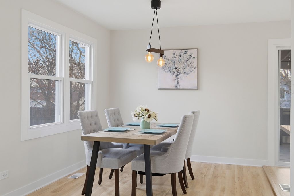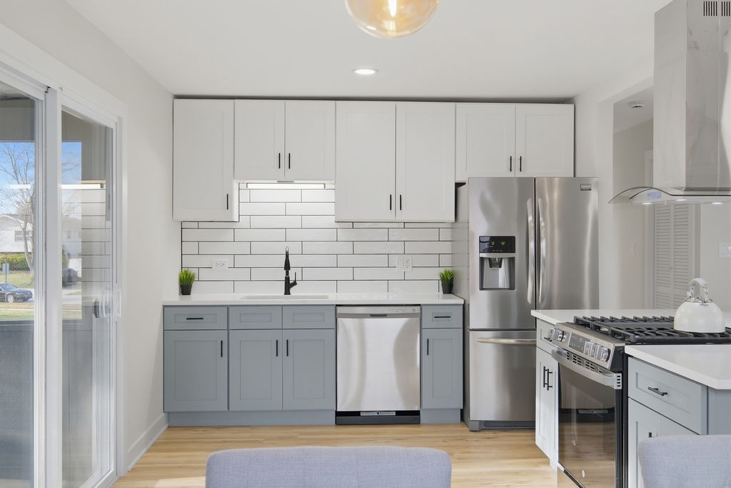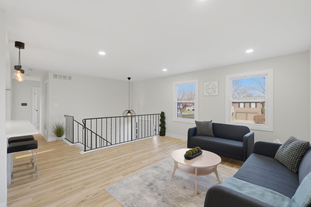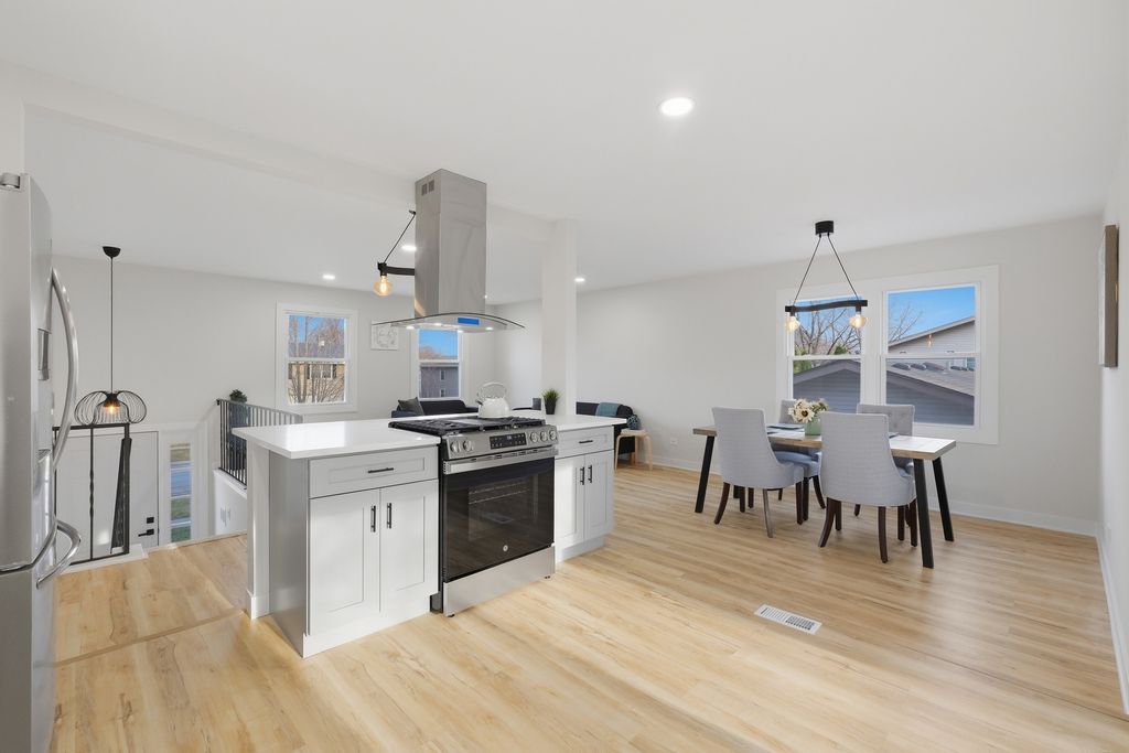 Move right into this updated 4-bedroom, 2.5-bath raised ranch with a 2-car attached garage. The bright main level offers an open flow between the living room, dining area, and kitchen, with light flooring, recessed lighting, and large windows that bring in abundant natural light. The kitchen features brand-new stainless steel appliances, new shaker-style cabinetry, subway tile backsplash, a center island, and easy access to the covered deck.Additional updates include brand-new windows throughout, newer siding,new luxury vinyl flooring, fresh interior paint, brand-new 2-panel doors throughout, a brand-new water heater, and a newer furnace. Both bathrooms have been fully updated, including a new tub, tile, and vanity on the main level, along with a new shower, vanity, and tile on the lower level. LED lighting has also been updated throughout the home. The finished walkout lower level adds flexible living space, while the fenced backyard, covered patio, and mature trees create inviting outdoor areas to enjoy.
