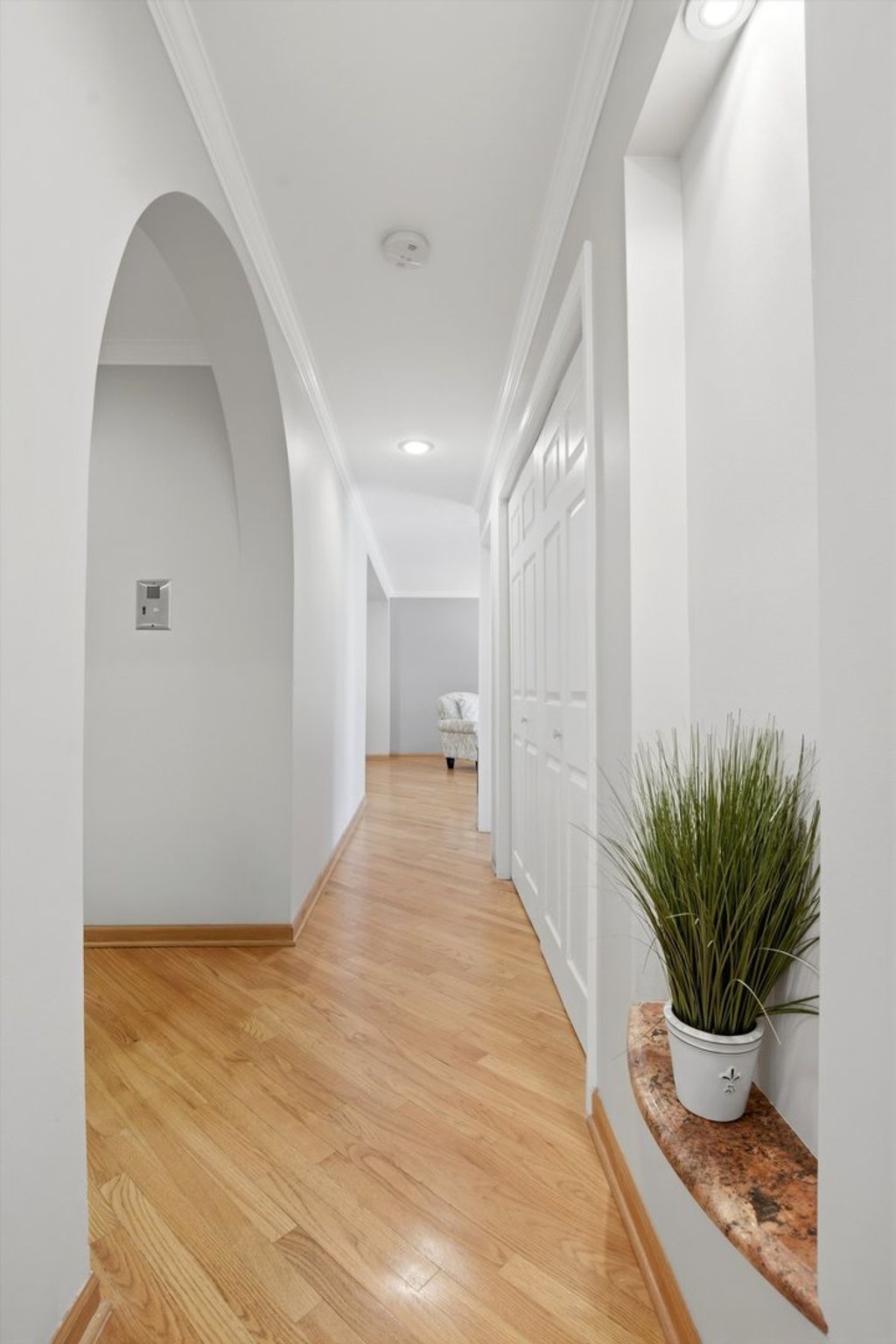 Tucked within the beautifully landscaped grounds of Bristol Court, this well-maintained residence offers comfort, space, and an effortless everyday lifestyle. Hardwood floors run throughout, creating a warm and cohesive feel across the living spaces. The kitchen features neutral cabinetry and stainless steel appliances, opening seamlessly to the dining and living areas. The primary suite includes a full wall of closets and a private bath with a walk-in shower and generous linen storage, while the spacious second bedroom offers flexibility for guests, a home office, or both. Large windows fill the home with natural light in every room. Residents enjoy indoor parking, additional storage, convenient laundry in the building, and park-like grounds that make coming home feel like a retreat. Ideally located within walking distance of Maine South High School and just a short drive to Uptown Park Ridge, Metra, shopping, dining, and O'Hare airport.
