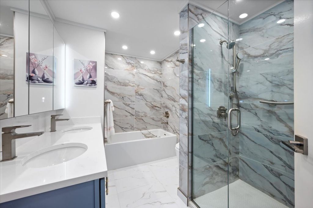 Welcome to Unit 1502 at 195 N Harbor Drive, a beautifully appointed three bedroom, two bath residence in the coveted Parkshore Condominiums, perfectly situated in Lakeshore East. Floor-to-ceiling windows and a private balcony showcase breathtaking panoramic view of Lake Michigan, DuSable and Monroe Harbors, and the city skyline, with north, east, and south exposures that flood the space with natural light. The open floor plan is ideal for both everyday living and entertaining, centered around a recently renovated chef's kitchen (2019) with stainless steel appliances, quartz countertops, and ample cabinetry. The spacious primary suite is a true retreat, featuring a stunning new (2024) en suite bath with a soaking tub and elegant finishes. Two additional bedrooms provide flexibility for guests, a home office, or den, complemented by a second beautifully renovated bathroom. In-unit laundry adds everyday ease. Parkshore residents enjoy a full suite of premier amenities, including 24-hour door staff, valet parking, an outdoor pool, fitness center, party rooms, sun deck, tennis and pickleball courts, bike storage, and on site management. All just steps from the lakefront, parks, dining, and downtown convenience. This is elevated city living at its finest. An exceptional home with iconic views, luxury amenities, and an unbeatable Lakeshore East location.