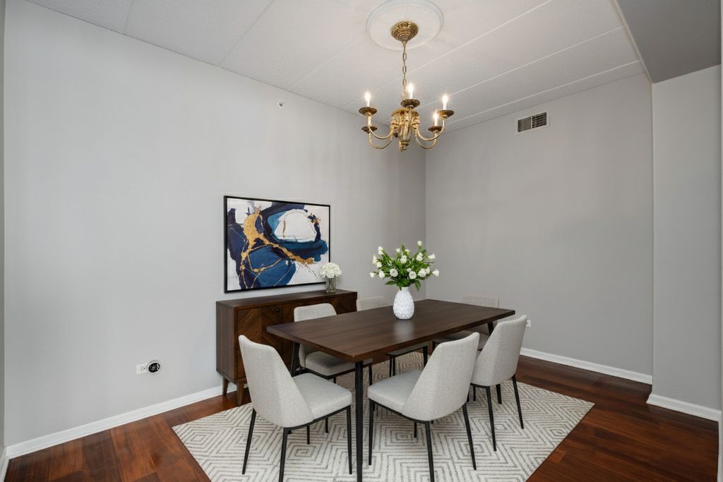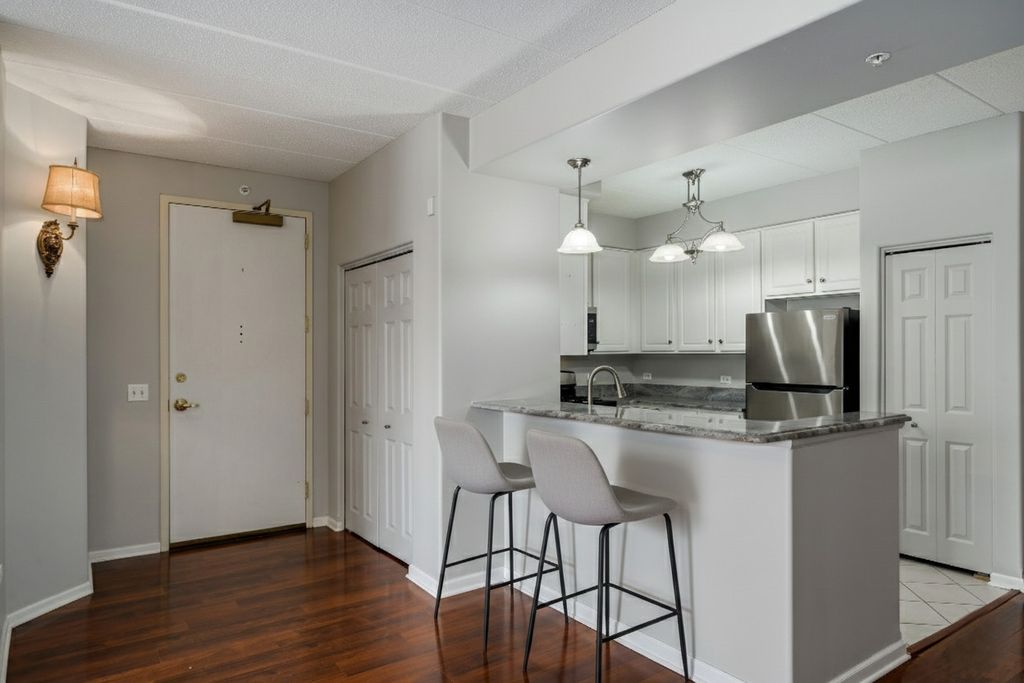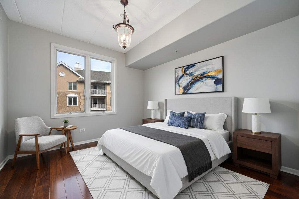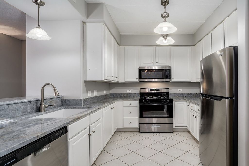 Welcome to this beautifully updated 2-bedroom, 2-bath residence in the highly sought-after Park Ridge Pointe community, just moments from vibrant Uptown Park Ridge with its dining, nightlife, boutiques, theater, and everyday conveniences. This spacious 1,381 sq ft home features a thoughtfully designed open-concept layout with dedicated space for a dining area, perfect for both everyday living and entertaining. The updated kitchen showcases granite countertops, new stainless steel appliances, and modern finishes, complemented by fresh paint throughout for a clean, contemporary feel. Enjoy peaceful north-facing views from your private balcony, filling the home with natural light. The generous primary suite offers a beautiful walk-in closet and a well-appointed en-suite bath with shower, while the second bathroom has been tastefully updated with tub. Spacious bedrooms and a functional layout complete this exceptional residence. Additional highlights include a heated garage parking space, ample guest parking, and a generous storage unit included in the purchase. The professionally maintained building offers secure entry and recently enhanced security features, providing added peace of mind. Experience comfort, style, and convenience in one of Park Ridge's most desirable communities.