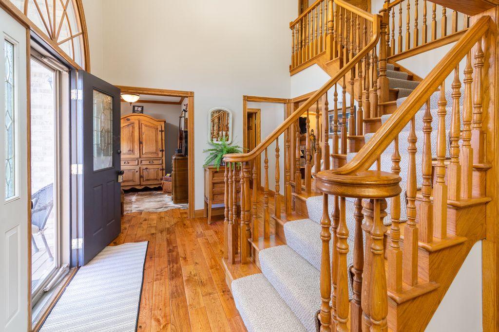 One of a kind, gorgeous custom built, 4 bedroom, 4.5 bath home on nice lot. It features beautiful hardwood flooring on the main level. There is a cozy wood burning fireplace in the living room. The kitchen is spacious and has plenty of cabinetry, lovely granite counter tops and comes with the appliances. There is a formal dining room, office for the folks working from home, main level laundry, a walk-in pantry, door to the sunny concrete patio, salt water hot tub and a fenced rear yard. On the second level there are 4 bedrooms and 3 baths. The primary bedroom is spacious, has tray ceiling, a primary bath with double vanities, whirlpool tub, walk-in closet and tile flooring. A must see to appreciate. All other bedrooms have walk-in closets. There is crown molding and vaulted ceilings in many areas of the home plus a double staircase, so unique. The full basement has a rec room, full bath, an area for extra living space with epoxied floor and looks great. The attached 3 car garage is heated and also has epoxy flooring. So many more great features to see, call today for a private showing.