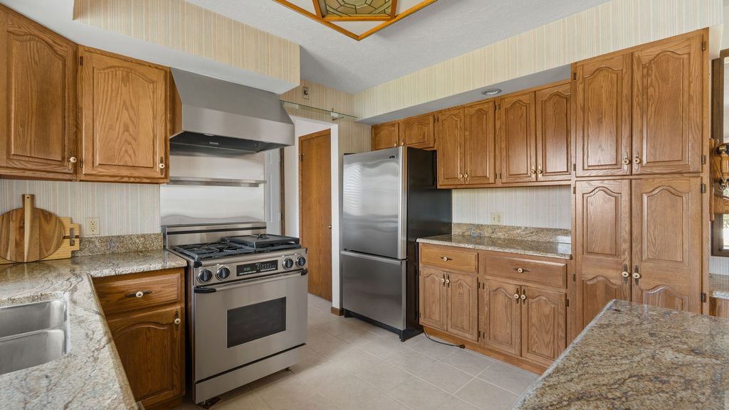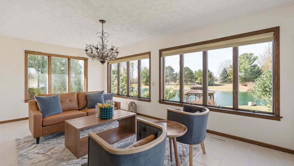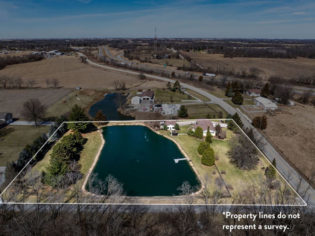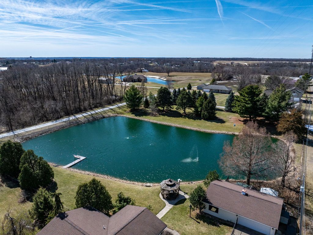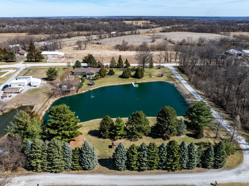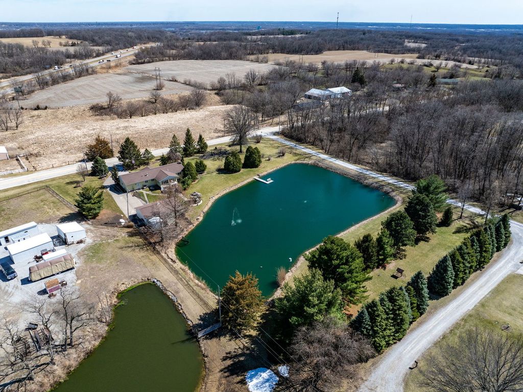 Unicorn Alert! Well maintained one of a kind walk out ranch home on 2.45 acres with its own private pond! Over 2,600 square feet finished with 2 car attached garage, plus additional 2 car garage with attached entertainment room! 3 bedrooms and 2 full bathrooms & laundry all on the main level. The primary bedroom has attached full bathroom. Kitchen has stainless steel appliances, granite countertops, breakfast bar, & eat in dining space. Beautiful family room off the back overlooking the pond. Finished walk out basement with large rec room area & kitchenette. Gazebo out back, Picturesque and beautiful! Call for your private showing.