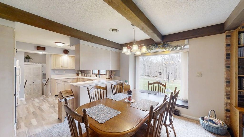 Tucked away on nearly 2.5 wooded acres in Danville, this sprawling 3 bedroom, 2.5 bath ranch offers the perfect blend of space, privacy, and comfort! Inside you'll find both a sunken living room and a cozy family room, each filled with beautiful natural light - creating warm, inviting spaces for everyday living and entertaining. The heart of the home features an open kitchen with both a formal dining room and a casual eat-in area, ideal for gatherings of any size. The family room is highlighted by a charming brick wood-burning fireplace and flows seamlessly into an incredible sunroom - your new favorite spot to relax and take in the peaceful surroundings year-round. The spacious primary suite includes a private full bath, while two additional bedrooms offer plenty of flexibility. A bonus room just off the attached 3-car garage provides the perfect space for a home office, playroom, or hobby area. Outside, you'll love the expansive backyard complete with mature trees, a garden shed, and a firepit - perfect for enjoying quiet evenings or hosting guests. Recent updates include a new kitchen sink and faucet, water heater, updated showers in both bathrooms, refinished driveway, and new carpeting and flooring -making this home move-in ready with room to make it your own!