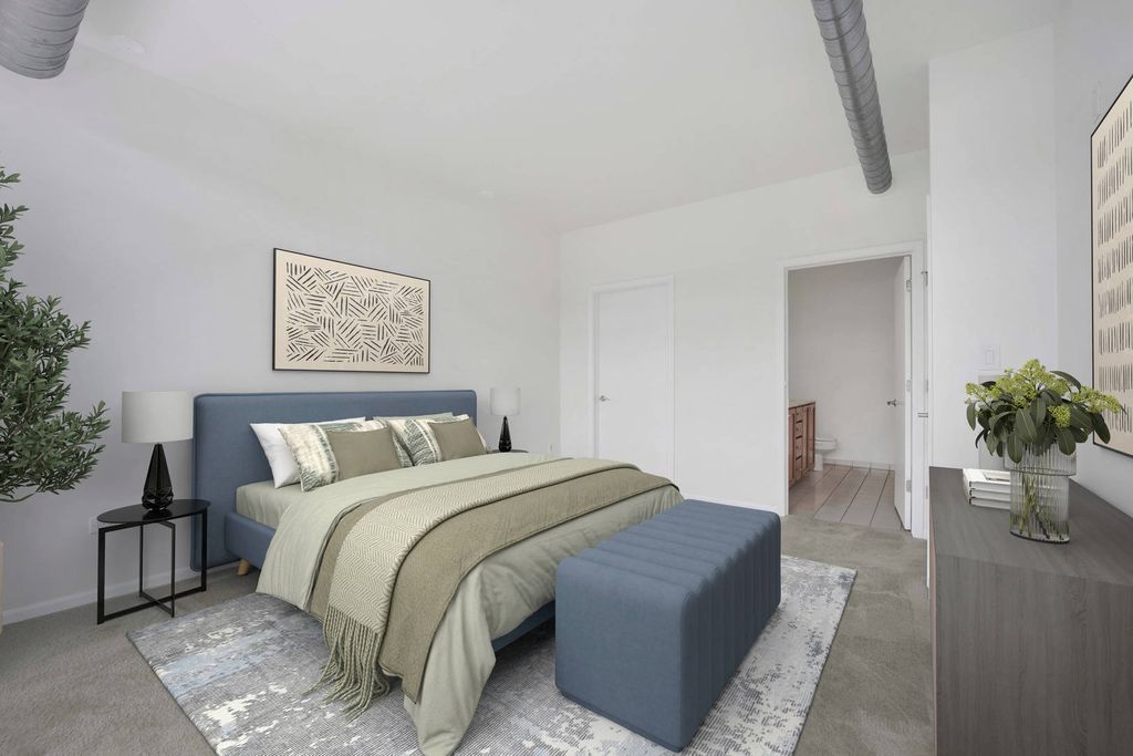 Discover this exceptional 2-bedroom, 2-bathroom penthouse condo with a bonus den/office, situated atop a historic loft building. This newer construction residence presents in pristine condition, featuring dark-stained hardwood floors, professional modern neutral paint, and freshly cleaned carpets. The highly desirable split floor plan ensures privacy with fully enclosed bedrooms. The gourmet kitchen boasts granite countertops and stainless steel appliances, opening seamlessly to a spacious dining and living area anchored by a granite-tiled fireplace. Floor-to-ceiling windows flood the living spaces and bedrooms with natural light. The luxurious master suite includes a massive walk-in closet (9'x5'), and convenience is paramount with an in-unit washer/dryer. Step outside to your expansive private deck (20'x8'), offering views of the landscaped courtyard and glimpses of the city skyline. One indoor heated garage parking space for additional $30,000. Monthly assessments cover DirectTV and high-speed Internet. Residents enjoy a full-amenity complex featuring an outdoor pool, movie theater, fitness center, party room, and a common roof deck. A rare opportunity to own a home that truly has it all.