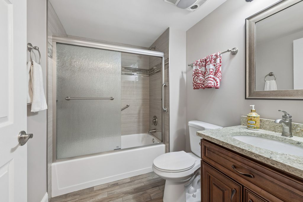 Low Inventory is all around but here is your chance! Welcome home to this beautifully updated RANCH condo in Fairfax Commons. So much NEW it's going to be hard to find anything like it. Let's start by noticing ALL NEW WINDOWS through out the entire unit! Yes EVERY WINDOW IS NEW. Step inside to a bright open living area with tons of natural light beaming through and the NEW sliding door to you backyard patio. With NEW laminate hardwood flooring and the high vaulted ceilings this space feels so open and airy. The living room flows into a lovely dining area that makes the perfect space for both dining and entertaining. Great open concept living. The kitchen is a true standout! Updated from top to bottom with warm dark wood cabinetry, bronze tone hardware, granite countertops, tile backsplash, all stainless appliances, recessed lighting and wait there's more...a walk-in pantry! Everything sleek yet warm in design. To make this kitchen even better there's a separate eating area. So cozy for that morning coffee or lunch with friends. The primary bedroom is generous in size with a private updated ensuite complete with two sinks, new tiled shower and a walk in closet! The 2nd full bathroom is also updated and just perfect to accommodate guests or private use for the second bedroom. The laundry room is a wonderful size complete with cabinets for storage, a brand new dryer and newer washing machine. So come on over and take a look at this meticulous move in ready home with the ease and convenience of ranch-style living in an updated condo with a two car garage. Fairfax Commons is so charming with a suburban feel yet easy access to the city, shopping and dining. Welcome home!