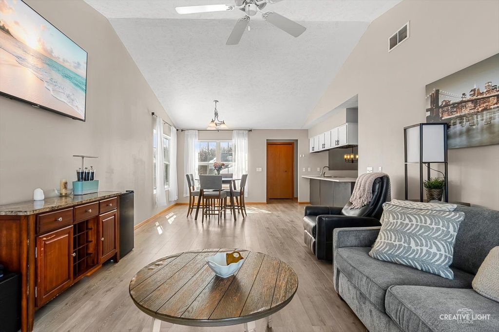 Investor friendly (rentals are allowed) & FHA Approved!! This open concept 2nd floor end unit is light & bright! This recently painted 2 bedroom, 2 bath home has cathedral ceilings in the living room and gas-log fireplace with a newly installed mantel, and access to a large, private balcony! The home provides a generous layout with a dining room and kitchen combo, perfect for entertaining. The kitchen offers ample cabinet space and an eating area as well. The home offers two perfect-sized bedrooms, including the master that features an ensuite bathroom and walk-in closet. This home also features newer luxury vinyl plank flooring throughout, a newly replaced furnace and AC (2024), & new oven 2025, updated bathroom vanities, a large laundry room and extra storage space PLUS a 1-car garage! Conveniently located near parks, schools, and the downtown area with easy access to I-88, making it an ideal commute!