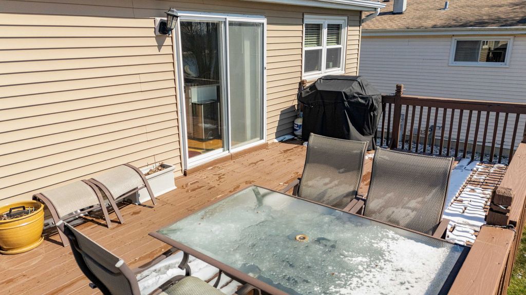 Spacious 4-bedroom, 2-bath raised ranch offering comfort, updates, and scenic views! This well-maintained home features newer windows (2012), brand-new carpet, and two fully renovated bathrooms. The updated kitchen boasts quartz countertops (2021), a new dishwasher, and overlooks a beautiful two-tiered deck-perfect for entertaining or relaxing while enjoying peaceful pond views. The finished lower level offers a cozy family room with a gas fireplace, providing additional living space for gatherings or quiet nights in. A bedroom and full bath as well. With a rear exit door it's ideal for related living. Complete with a 2-car garage, this home combines functionality and charm-ready for its next owner!