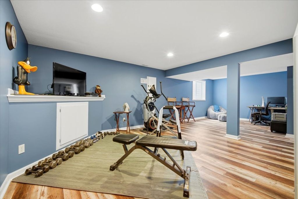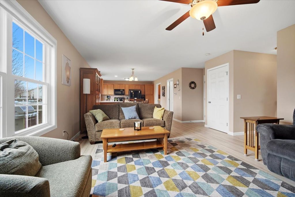 A one-owner home with no backyard neighbors! Very clean! The open-concept kitchen flows into the living room and includes a convenient pantry closet, while the mudroom off the garage offers main-level laundry. New flooring has been installed on the main level and basement. Upstairs you'll find four spacious bedrooms, two with walk-in closets. The finished basement provides a large open living area, a full bath, and a generous storage room. You'll enjoy the extended patio and fully fenced backyard! New roof installed in 2025. This is one of the few HOAs with a pool.