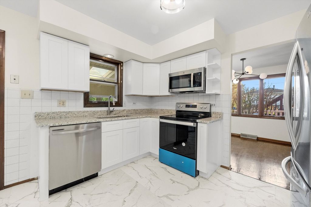 Charming 3-bed, 2-bath split-level home nestled on a quiet, tree-lined street in one of Homewood's most established neighborhoods. Filled with natural light, the home offers a spacious living room with large windows and a seamless flow into the formal dining area, perfect for both everyday living and entertaining. The kitchen has been thoughtfully updated with new stainless appliances, modern white Shaker cabinets, and granite counters, and also offers space for a table, creating a functional area for cooking and everyday dining. Adjacent to the kitchen, the lower-level family room provides additional living space, along with a convenient full bath, laundry and storage area. Upstairs, you'll find three generously sized bedrooms and a full hall bath. Just off the back of the home, a large versatile screened-in porch provides the perfect spot to relax, dine, or enjoy morning coffee while overlooking the peaceful backyard. One of the home's most unique highlights is the private path along the side of the property that leads directly to Hollydale Park, offering convenient access to playgrounds, green space, and outdoor recreation-perfect for morning walks, pets, or simply enjoying nature. Includes an attached 2-car garage and a large driveway. Located minutes from parks, schools, shopping, dining, and the vibrant Homewood downtown district, this home also offers easy access to Metra and major highways for a smooth commute.