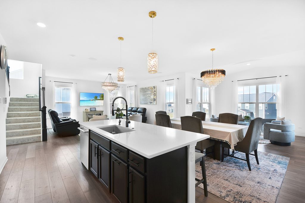 Experience elevated living inside Hawthorn Woods Country Club, a premier gated golf course community. Built in 2024, this stunning 5 bedroom, 4 full bath residence offers a spacious, open layout paired with modern, trending finishes and exceptional upgrades throughout. From the moment you arrive, the curb appeal makes a statement. The classic exterior with covered front porch creates a warm welcome and the perfect place to enjoy peaceful mornings overlooking the beautifully maintained neighborhood. Step inside to a bright, open foyer anchored by a striking chandelier and wide plank flooring that flows seamlessly throughout the main level. The heart of the home is the beautiful white kitchen featuring stainless steel appliances, abundant cabinetry, a designer backsplash, and a large center island with seating. Pendant lighting adds a modern touch, while the clean lines and neutral palette reflect today's most sought-after design trends. The kitchen opens directly to the dining area and family room, making entertaining effortless and everyday living comfortable and functional. Large windows frame serene neighborhood views and allow sunlight to pour into the sun room and gathering spaces. The layout is ideal for hosting, relaxing, or simply enjoying daily life in a light-filled setting. Upstairs, a spacious loft provides flexible living space perfect for a secondary lounge, home office, or media area. The primary suite is generously sized and filled with natural light, offering a peaceful retreat at the end of the day. The en-suite bath features dual vanities, a beautifully finished walk-in glass shower with modern fixtures, and clean contemporary design. Additional bedrooms are well proportioned and bright, supported by thoughtfully designed full bathrooms that continue the home's cohesive modern aesthetic. The walk out basement is already framed and ready for your personal touches, offering incredible potential for expanded living space, recreation, or customized design to suit your needs. Located within a secured golf course community, residents enjoy access to a private golf club, fitness center, swimming pool, and vibrant amenities that support an active lifestyle. The neighborhood is peaceful, walkable, and family friendly while remaining close to restaurants, shopping, malls, parks, highways, and transportation. This is more than a home. It is a modern lifestyle in a premier setting, offering space, security, and sophisticated design in one exceptional address.