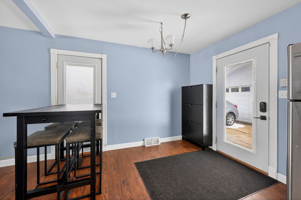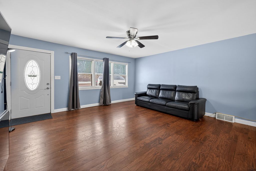 Beautifully updated ranch home offering modern finishes and comfortable living throughout. The bright and spacious living room features large front windows that allow natural light to pour in, along with wood laminate flooring and updated overhead lighting. The upgraded kitchen is both stylish and functional, complete with stainless steel appliances, tile backsplash, white cabinetry, upgraded lighting, and matching wood laminate flooring that flows seamlessly through the space. The full bathroom features a vanity with granite countertops, shower/tub combo and ceramic tile. The primary bedroom offers generous closet space and plenty of natural light, while two additional bedrooms provide flexible living space for family, guests, or a home office. Numerous improvements have been made throughout the home, including a newer roof, furnace and hot water heater, siding with a beautiful stone front accent, and an updated electrical system with upgraded fuse box. The oversized detached 2.5-car garage is a standout feature, offering both heating and air conditioning, perfect for year-round use as a workshop, hobby space, or additional storage.