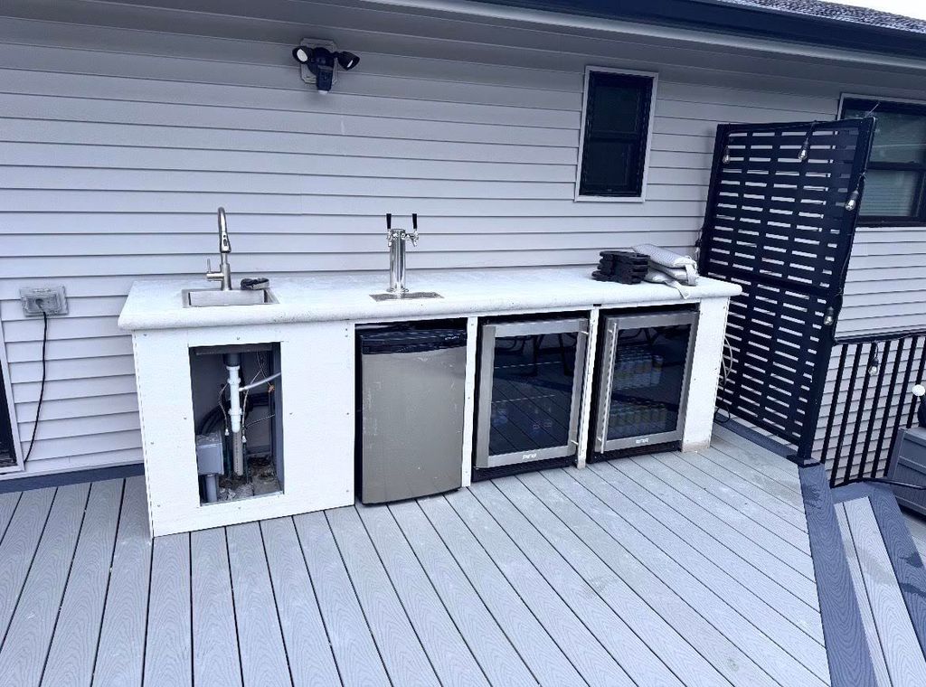Beautifully updated split-level home located in the highly desirable Downers Grove, Illinois School District, offering exceptional quality and an impressive list of upgrades throughout. The stylish kitchen features granite countertops, a breakfast bar, and stainless steel appliances-perfectly blending functionality with modern design for both everyday living and entertaining. Major improvements include new plumbing, upgraded electrical service, a new roof, windows, siding, gutters, doors, and outlets. The outdoor deck is constructed with maintenance-free **Trex decking, railings, and privacy walls, offering durability and effortless upkeep. The main level features three generously sized bedrooms, a beautifully remodeled bathroom with a double vanity, a spacious living room highlighted by a stunning stone fireplace, and a formal dining room ideal for gatherings. The finished lower level expands the living space with a large family room centered around a second fireplace, a fourth bedroom, and a full adjacent bathroom-perfect for guests, a home office, or additional living space. The backyard is truly one-of-a-kind and designed for elevated entertaining. Outdoor features include $4,000 in commercial-grade restaurant equipment, natural gas connections, dual sinks with interior drainage, a dual-tap kegerator, two display refrigerators, HDMI-ready outlets, a durable concrete countertop, and an impressive 48" x 16" natural gas fire pit. A high-end pool completes this incredible outdoor retreat, creating the ultimate setting for hosting, relaxing, and making lasting memories.