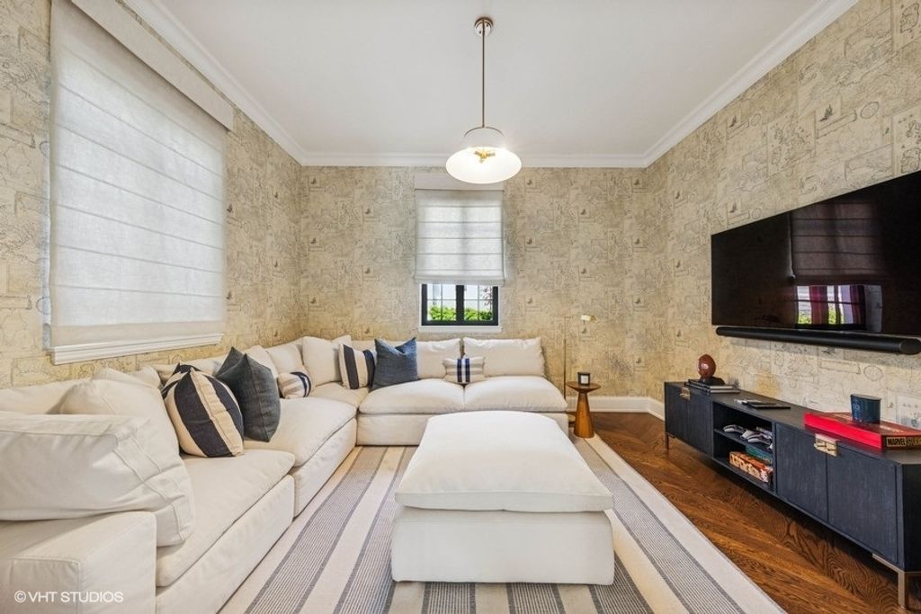 A once-in-a-lifetime opportunity to own the crown jewel of Hinsdale. Ideally located in the heart of town, this exceptional residence has been meticulously restored from top to bottom. It features an expansive 2-car garage and a rare two-bedroom coach house-an architectural treasure that could never be replicated today. Nestled on a prominent corner lot spanning over half an acre, this French Eclectic-style residence boasts timeless curb appeal. From its stucco facade and slate roof to the custom ironwork and original steel casement windows, every exterior detail evokes classic European elegance. Inside, a dramatic foyer with a sweeping double staircase sets the tone. The sun-drenched living room and library boast 10.5-foot ceilings and oversized French windows. Entertain in style in the dining room with seating for 14 and bespoke wallpaper. The show-stopping kitchen-once an art gallery-features 16-foot coved ceilings, walnut cabinetry, a 16' Calacatta Viola island and a La Cornue range. Upstairs, the primary suite includes a fireplace, massive walk-in closet, and marble-clad bath with freestanding tub and slab shower. Additional bedrooms, baths, and a laundry room complete the second level. The third floor offers a bunk room, three additional bedrooms or offices, and full bath. The former stables have been transformed into a coach house with a 2-car garage and a legal, rentable 2-bed, 1-bath apartment-complete with kitchen, laundry, and private patio. An extraordinary blend of history, architecture, and modern comfort. Don't miss the rare opportunity to own one of Hinsdale's most iconic homes.