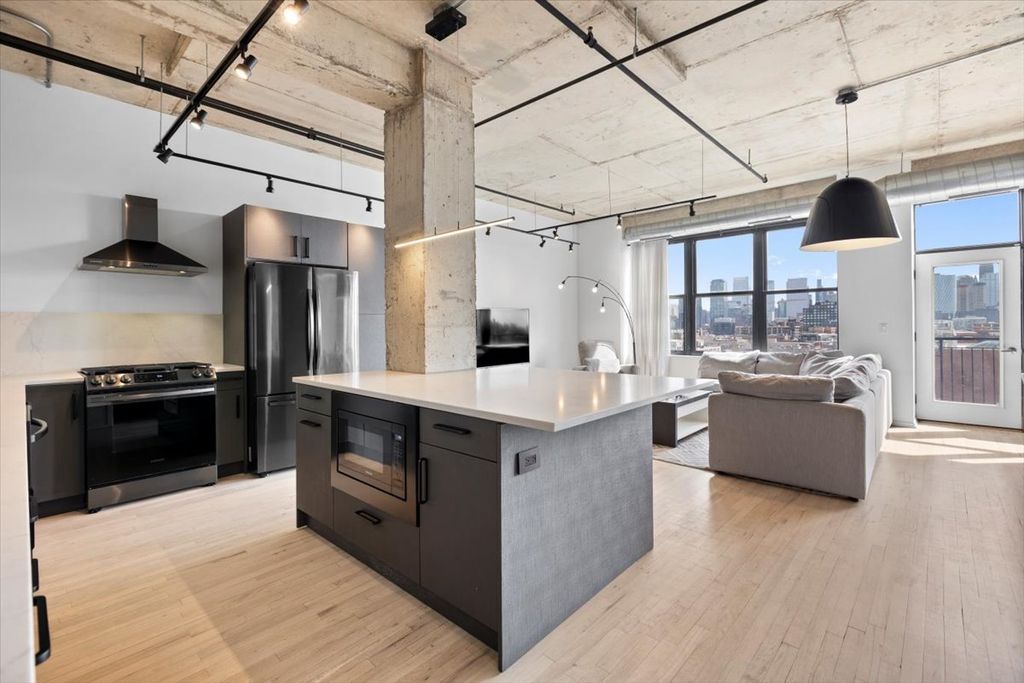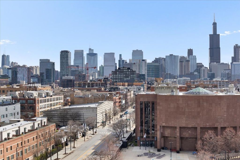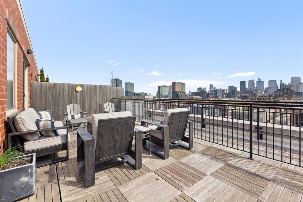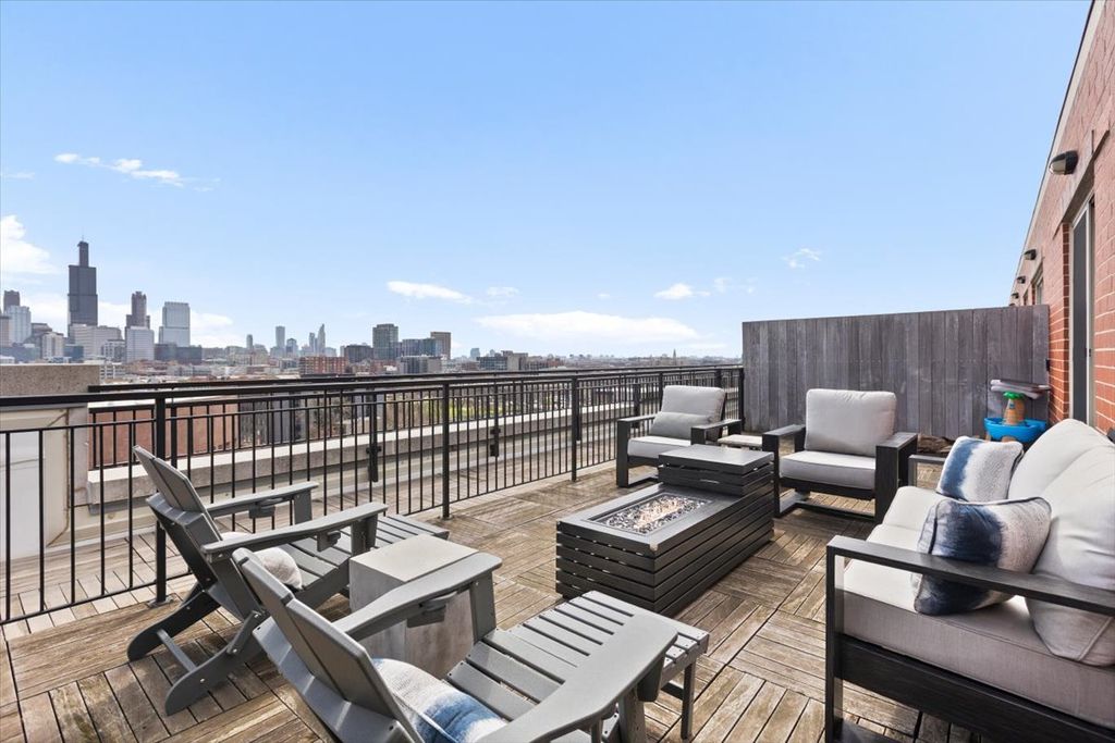Calling all savvy West Loop buyers looking for a huge, gorgeous, 3 bed/ 3 bath 2-story penthouse fully renovated in 2021! As you enter this luxury unit, prepare to be wow'd by stunning views from every angle of the open-concept main level, complete with a newer modern kitchen, quartz countertops, black stainless appliances, and a large island with ample storage. The kitchen flows into a bright living and dining area with oversized windows and access to a private balcony with spectacular skyline views, perfect for grilling. A full bath, in-unit laundry and a flexible third bedroom or office complete the first floor. Upstairs, you'll find 2 enormous fully-enclosed bedrooms with concrete ceilings: the spacious primary suite includes a walk-in closet, dual vanity and oversized rain shower + 2nd bedroom and 2nd full bath with soaking tub. Both bedrooms provide access to a rare private rooftop terrace with sweeping city views, ideal for entertaining or relaxing. Additional features include exposed concrete ceilings, bleached oak flooring, custom closet systems, and updated finishes throughout. Full-service building with door staff and strong reserves. 2 garage spots included in price. Steps from Skinner School, the United Center, public transit, multiple dog parks and everything West Loop / Fulton Market have to offer!