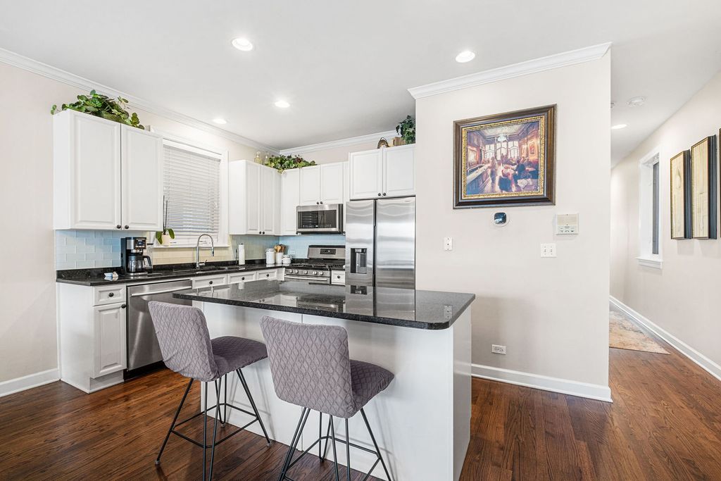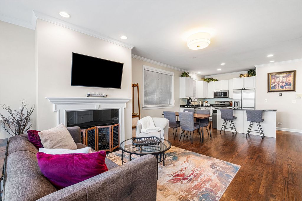 This beautifully maintained three-bedroom, two-and-a-half-bathroom duplex-down condominium in the desirable Southport Corridor offers abundant upgrades and ample private outdoor space. The main floor is bathed in natural light and presents an inviting open-concept layout. The sunny living room features a gas fireplace and flows seamlessly into the dining area and kitchen. The kitchen is appointed with newer stainless steel appliances and includes a custom-built, spacious pantry. Rounding out the main level is a powder room and the primary bedroom suite offering two spacious closets and an ensuite bathroom. Access a lovely private deck from the main level, featuring low-maintenance Trex decking and a waterproof covering, ideal for year-round enjoyment. The lower level provides space for relaxation and entertaining. The family room opens directly to a large private patio, perfect for hosting summer gatherings. This level also includes two additional well-sized bedrooms, a full hall bathroom, a laundry room with a newer washer and dryer, and additional closet space. A common roof deck over the garage offers extra outdoor space for larger events. The current owners have executed substantial upgrades to the property, including replacing all appliances and the HVAC system. The unit includes one garage parking space and an extra dedicated storage closet. Conveniently situated with easy access to public transportation and central to the vibrant shopping, dining, and nightlife offerings of Southport, Lakeview, and Wrigleyville.