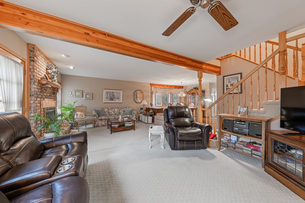 Spacious end-unit townhome now available in the highly sought-after Brook Hills neighborhood of Orland Park! Filled with natural light, this home offers the perfect blend of comfort and convenience. Enjoy nearby Discovery Park with tennis and basketball courts, a playground, and walking trails, plus easy access to I-355, Silver Cross Hospital, and a variety of local amenities. Step inside to a warm and inviting interior featuring an open floor plan that seamlessly connects a well-appointed kitchen with hardwood floors, a formal dining area, and a large living room with a cozy fireplace-ideal for entertaining or relaxing. Upstairs, you'll find a convenient laundry closet, a large master suite with private bath, and two additional bedrooms with beamed vaulted ceilings. The full unfinished basement provides ample storage or future expansion potential. Outside, the home offers a 2-car garage, a large concrete patio, and an expansive yard-perfect for outdoor gatherings. Don't miss this rare opportunity to own in Brook Hills!