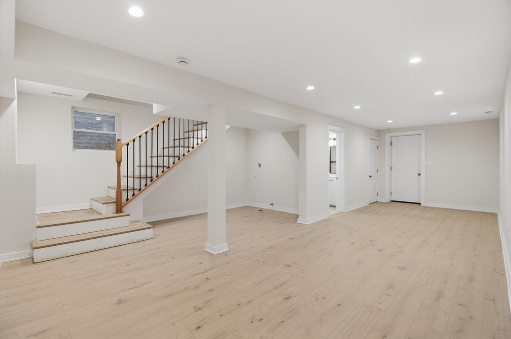 Welcome to your stunning gut-rehabbed home in the vibrant city of Chicago! This exquisite four-bedroom, three-bath residence offers three levels of beautifully designed living space, perfect for both relaxation and entertaining. As you step inside, you're immediately greeted by the warmth of new hardwood floors that flow throughout the main level. The open concept layout creates a seamless flow between the living, dining, and kitchen areas, enhanced by recessed lighting and an abundance of natural light that fills the home. The kitchen is a chef's dream, featuring elegant navy shaker cabinets and luxurious quartz countertops, providing both functionality and style. This space is ideal for family gatherings and social events. Retreat to the primary bedroom, a serene haven that boasts large bay windows, offering a picturesque view and a cozy atmosphere. Each additional bedroom provides ample space and comfort. The finished basement is a versatile area, perfect for a family room, creative space, or guest suite, adapting to your lifestyle needs. To top it all off, the main floor includes a beautiful sunroom that extends your living space, inviting you to enjoy morning coffee or evening relaxation while basking in the sunlight. This home truly embodies modern elegance and comfort, making it the perfect sanctuary in the heart of Chicago.
