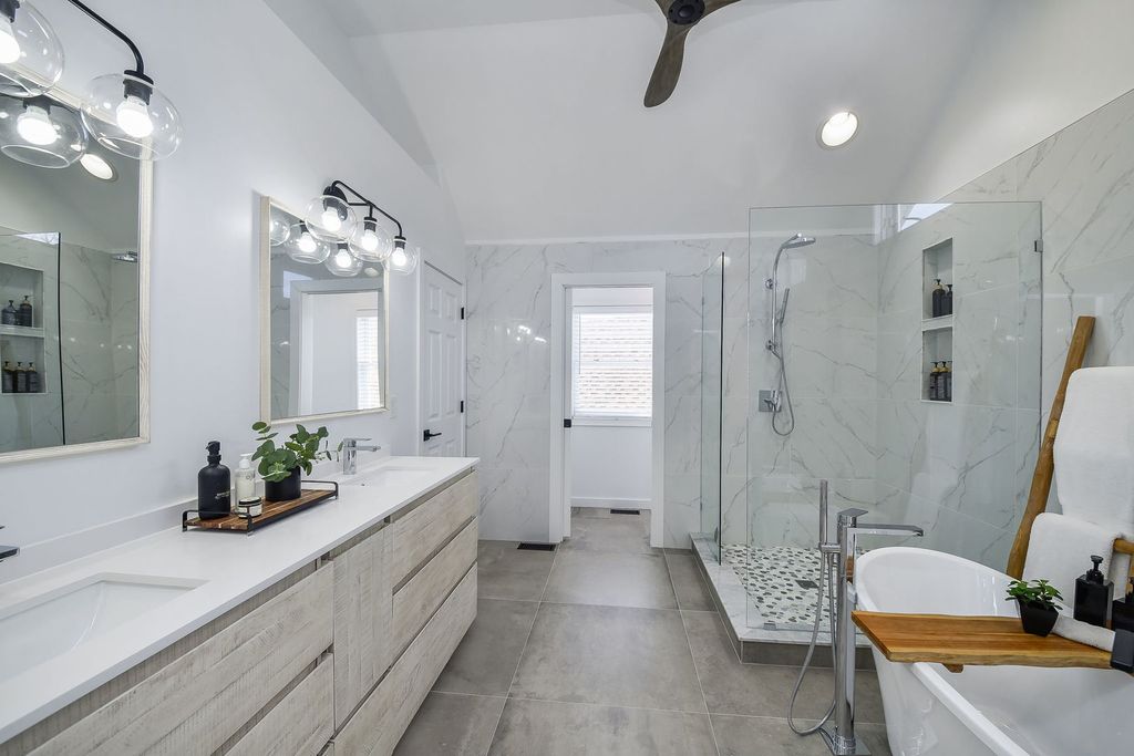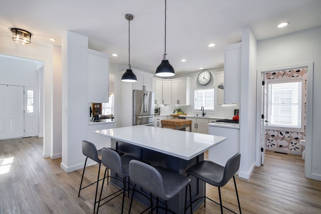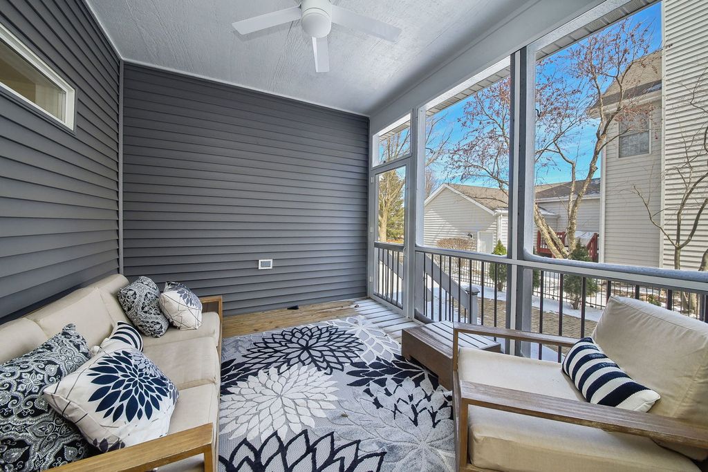 Thoughtfully renovated with a remarkable level of detail and quality, this Mill Creek Village home stands apart with a long list of high-end improvements that elevate both style and everyday function. A bright, airy entrance sets the tone, flanked by a formal living room and a beautifully appointed dining room that offer flexibility for both everyday living and gathering. The kitchen has been completely redesigned with a spacious island, new cabinetry with a clean and tailored finish, quartz surfaces that carry seamlessly from countertop to backsplash, and a premium appliance suite including a Viking range and hood. Designed as a natural gathering place, the kitchen opens easily to the adjacent family room and screened porch - an inviting space for morning coffee, relaxed dinners, or evening cocktails. The family room is anchored by a striking vintage Chicago brick accent wall that adds warmth and architectural character to the main living space. Updated flooring runs across the home, complemented by freshly painted walls, ceilings and trim, new baseboards, window coverings, and updated lighting from room to room. Upstairs, the primary suite offers a true retreat with a spa-like bathroom featuring a frameless glass shower, soaking tub, double sink vanity, high-end plumbing fixtures (including a Toto toilet), and tilework that carries from floor to wall. The additional bathrooms have been fully remodeled, and custom closet organizers in each bedroom add everyday ease. The laundry room has been thoughtfully redesigned with cabinetry, quartz counters, and a newer washer and dryer. Additional improvements include Monte Carlo ceiling fans, a smart thermostat, Ring doorbell, and updated exterior lighting. Outside, the improvements continue. The front yard has been professionally landscaped and enhanced with custom herringbone pavers leading from the front steps to the sidewalk, while the covered front porch enjoys views of the golf course. The home also features new siding, rain gutters with stainless steel guards, a recently replaced garage door and opener, and a private fenced backyard that offers just the right amount of outdoor space. Mill Creek's Village homes offer maintenance-free living, with snow removal and lawn care included. Residents enjoy access to golf, tennis, walking trails, forest preserve space, and a community pool with optional membership.
