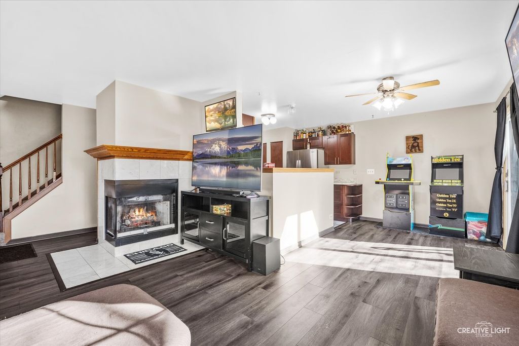 FANTASTIC TWO-STORY CONDO WITH A TWO-CAR GARAGE! This 2-bedroom, 1.5-bath home offers an inviting and functional layout. The main level features an open floor plan with a kitchen featuring new cabinetry and beautiful vinyl tile flooring that overlooks the dining area and flows seamlessly into the spacious living room, complete with a cozy gas fireplace, perfect for relaxing or entertaining. All new vinyl plank flooring runs throughout the entire first floor. Upstairs, you'll find two generously sized bedrooms, including a primary suite with a walk-in closet and access to a shared full bath. The bathroom features an extended vanity with a separate sink area and space for seating, making your daily routine a breeze. All new windows and slider door. New water heater. Enjoy living in a wonderful community with nearby parks and a scenic fishing pond. Conveniently located close to shopping, dining, and more. Don't miss this one-schedule your showing today!