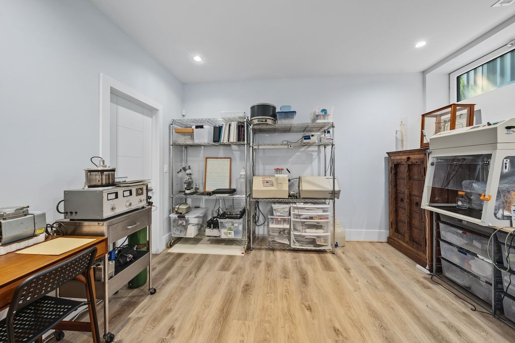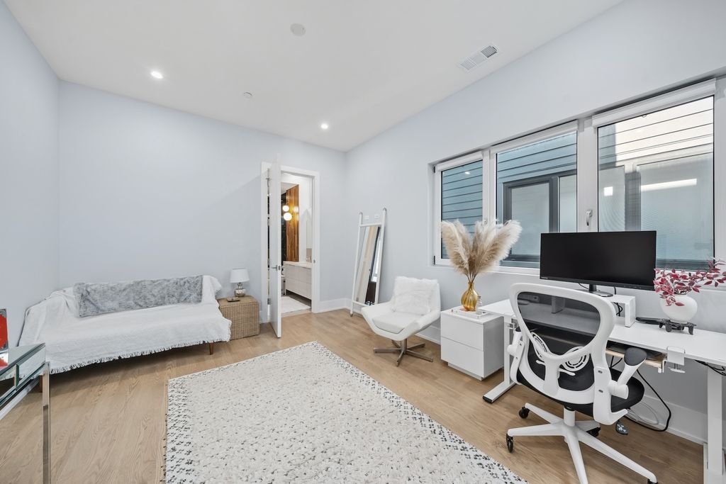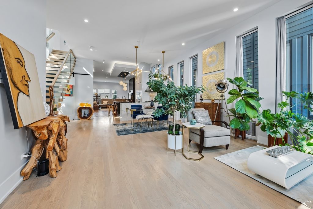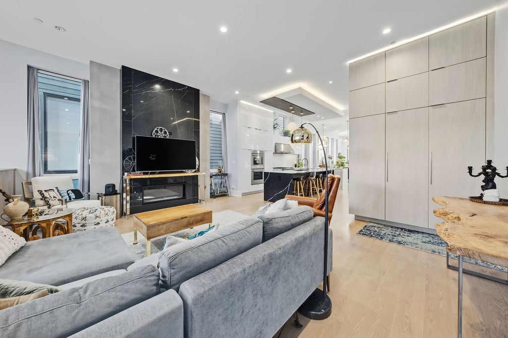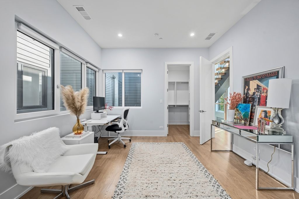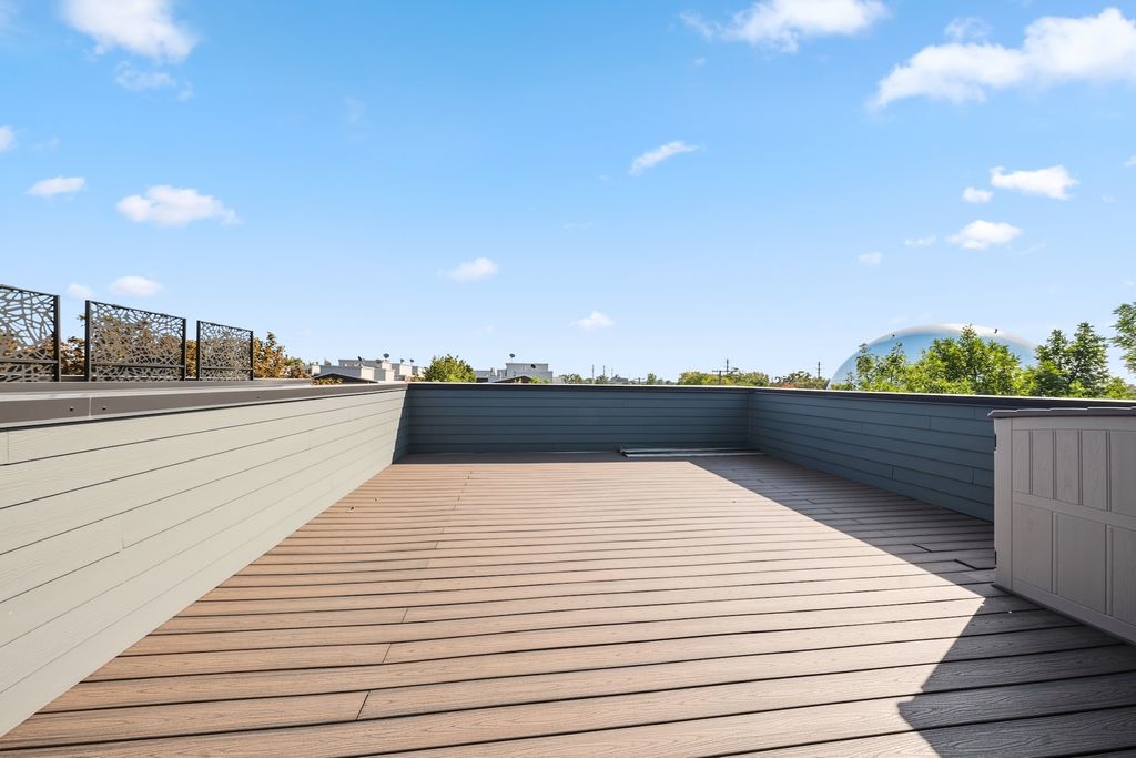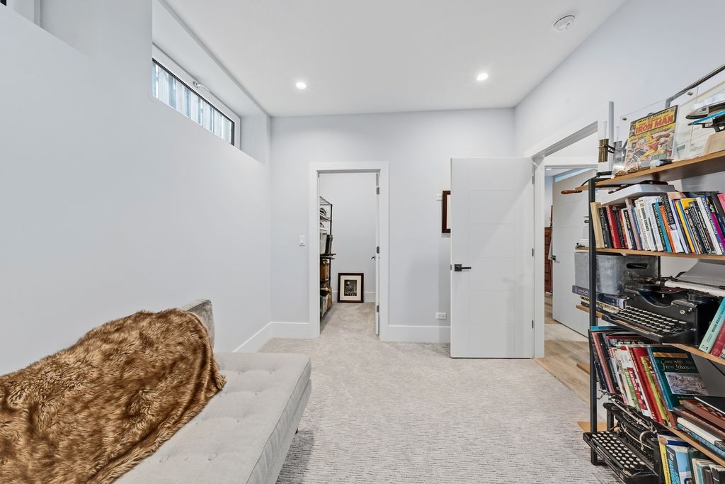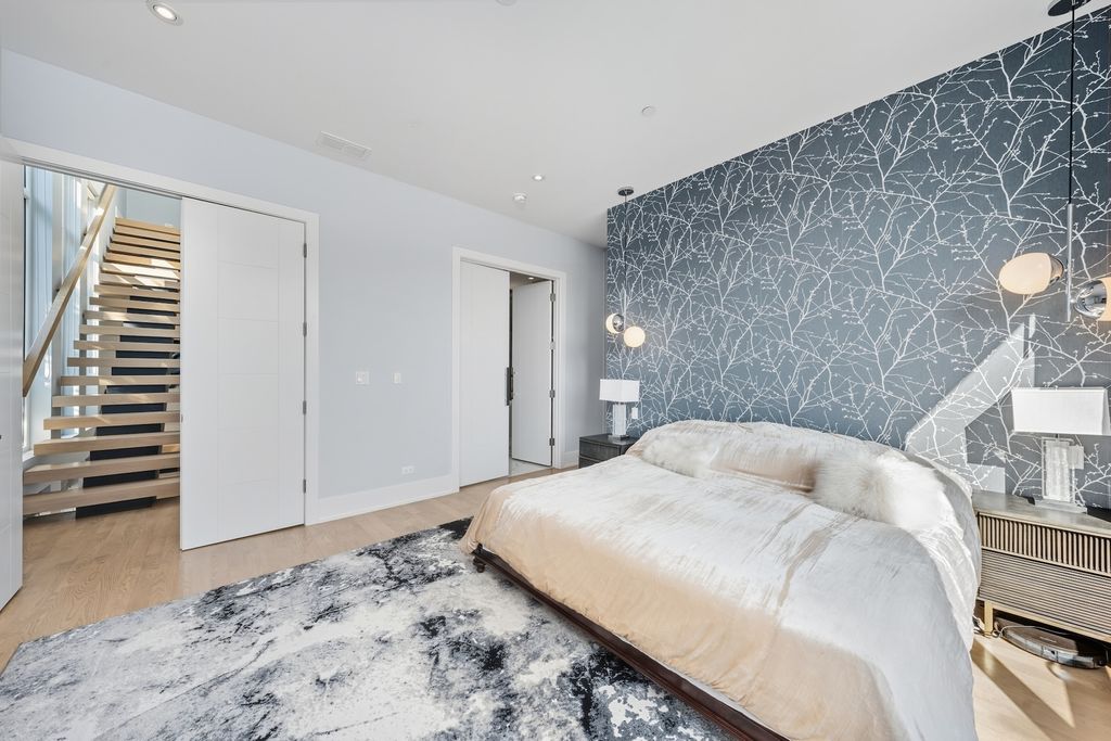 Architecturally stunning corner home in a 4-residence development by a leading Chicago builder, offering striking design, first-class finishes, and an exceptional level of detail throughout. The open-concept floor plan features soaring 11-foot ceilings, expansive windows overlooking Smith Park, and a dramatic open glass staircase that floods the interior with natural light. At the heart of the home is a chef's kitchen with high-end appliances, custom cabinetry, and a large island that flows into the great room with a contemporary gas fireplace, French doors, and a built-out mudroom. Upstairs, the luxurious primary suite includes a fully built-out walk-in closet and a spa-like bath with dual vanity, soaking tub, frameless glass shower, and heated floors. Two additional bedrooms share a Jack-and-Jill bath, and a full laundry room completes the level. The lower level offers two guest bedrooms, a full bath, a spacious recreation room with a full wet bar, and a second laundry area for added convenience. The crowning feature is the private rooftop terrace, complete with a pergola, fireplace, and penthouse wet bar-an entertainer's dream with skyline views. Additional highlights include washer and dryer on both the upper and lower levels, sleek modern finishes, and abundant storage throughout. Located just steps from Smith Park, a five-minute walk to the Metra, and a quick commute to the Loop, this home offers the perfect blend of luxury and convenience.