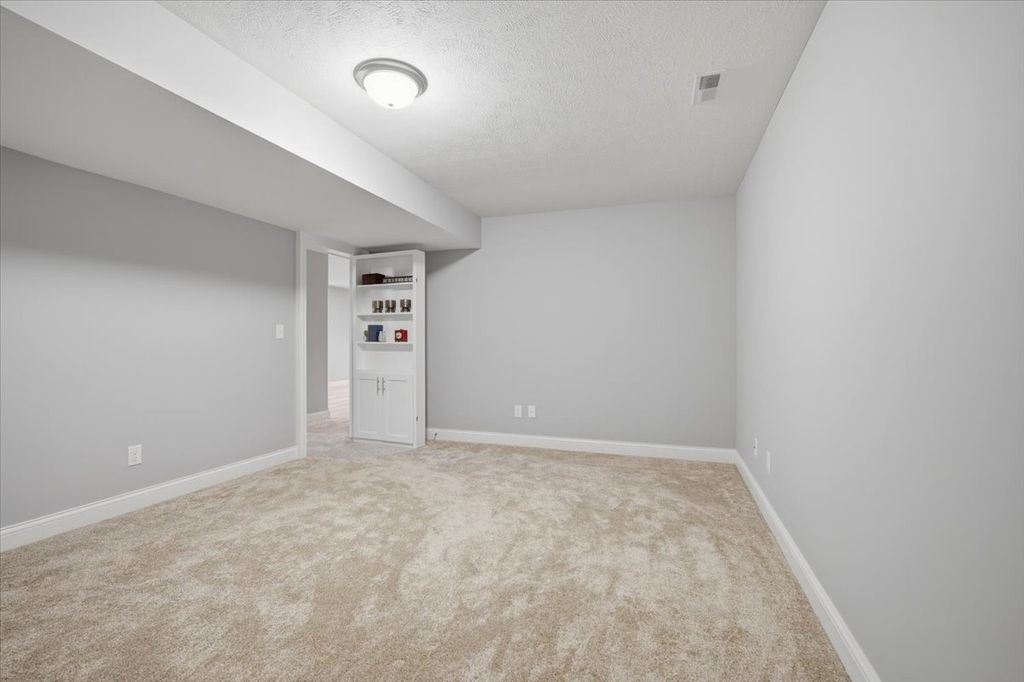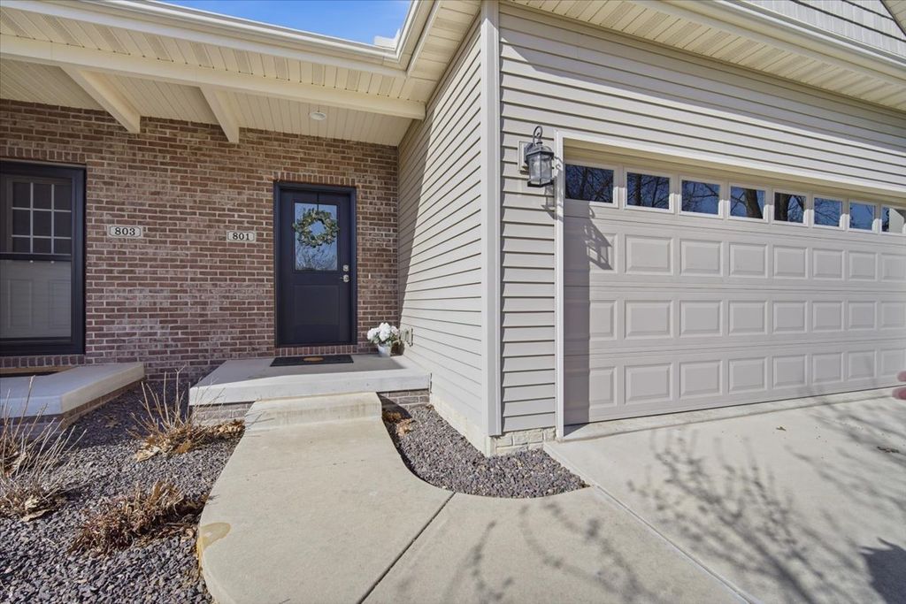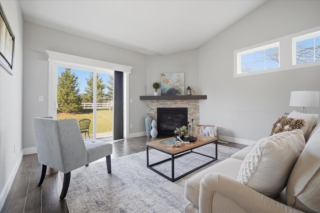 Gorgeous zero-lot home with wood flooring throughout main level, cathedral ceilings, ledger stone fireplace, white cabinets, granite counter tops, large peninsula and pantry. Beautiful primary bathroom with tiled walk-in shower, two sinks & spacious walk in closet. Peaceful end unit with extra windows and lots of natural light & beautiful finishes. Lower level is finished with a recreation area, full bath, bedroom and HIDDEN 13 x 15 flex room (hint: push on the bookcase). Nice private back patio with no back neighbors. Plenty of storage. Close to Constitution Trail, Prairie Vista & Highland Golf Courses. Easy access to Interstate.