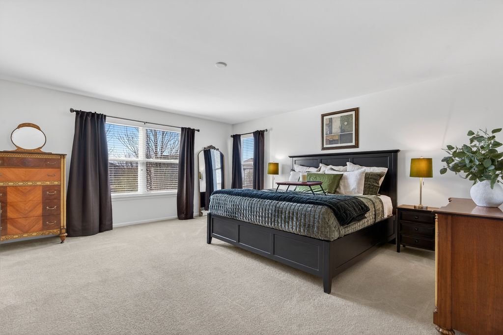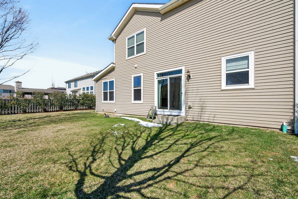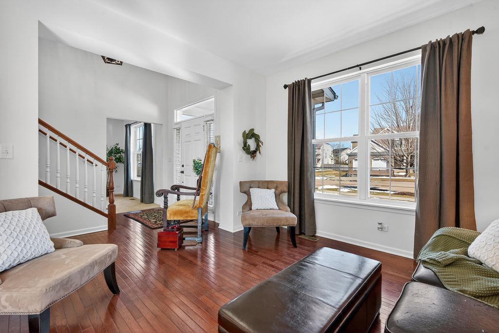 This inviting single-family home is located in the sought-after Lions Chase community of Huntley and offers 4 bedrooms, 2.5 bathrooms, a 2-car garage and a spacious unfinished basement. With almost 3000sq ft, this move-in ready home features beautiful hardwood floors and a neutral color palette throughout. The main living and dining areas are open and welcoming, highlighted by tray ceilings, abundant natural light, and large windows that bring the outdoors in. A private office near the front entry provides the perfect space for working from home or homeschooling and could easily double as a playroom. The formal dining room features continued hardwood flooring and offers an elegant, yet defined space for entertaining. It connects to a convenient butler's pantry and a generous walk-in pantry that leads into the open-concept kitchen. The eat-in kitchen accommodates both large and small dining setups and is equipped with timeless white cabinetry, and GE Profile appliances, including a double wall oven, gas cooktop, dishwasher, and refrigerator. Upstairs, the oversized primary suite easily fits a California king bed and includes a spacious en-suite bathroom with a walk-in shower, soaking tub, and two large walk-in closets. Three additional bedrooms each offer ample space, walk-in closets, and access to a full hall bathroom. The laundry room is conveniently located off the garage entry and includes newer Whirlpool washer and dryer units. Enjoy the fully fenced backyard, offering privacy, mature trees, and plenty of space for pets or relaxing outdoors. The large unfinished basement provides excellent storage or the opportunity to create additional living or recreation space. Ideally located just minutes from Stingray Bay and Deicke Park, with easy access to Route 47 and downtown Huntley shopping and dining, and top rated schools at Harmony Road Campus for elementary and high school and then Heineman Middle at Square Barn Road.