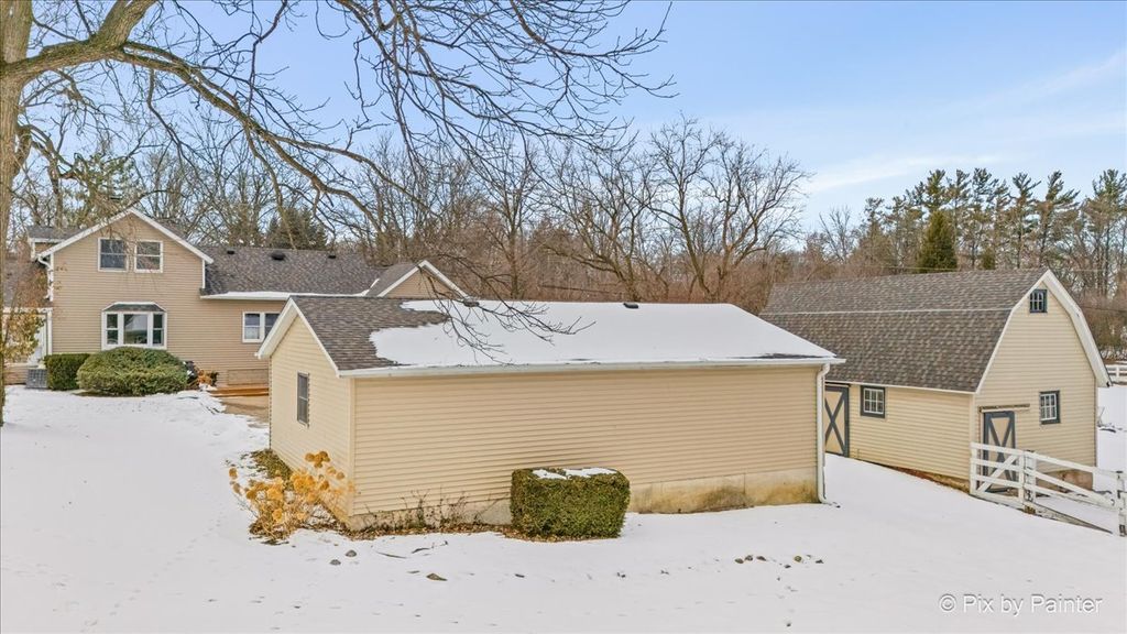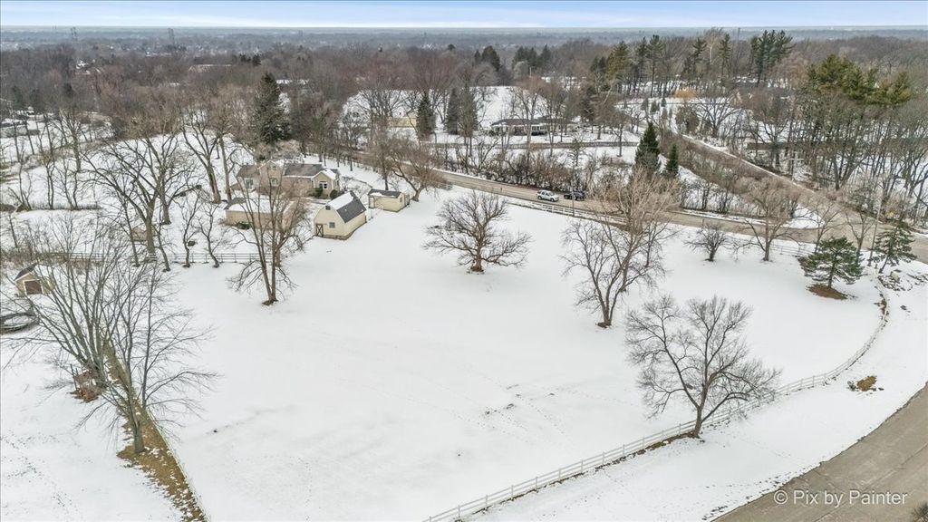 4 Acres of Opportunity - Equestrian Retreat, Private Estate, or Future Investment. Offered for the first time in over 50 years, this beautifully maintained 4-acre property delivers a rare combination of usable land, equestrian amenities, and a solid, updated home in a highly convenient Elgin location with easy access to I-90, Route 20, and Randall Road shopping, dining, and everyday services. The property includes a 2.5-acre homesite plus an additional 1.5-acre adjoining lot, creating flexibility, privacy, and long-term potential that is increasingly hard to find. The 2,200 square foot home offers 3 bedrooms and 2 full baths with hardwood flooring throughout and a thoughtful layout that includes a spacious living room, formal dining room, and an updated eat-in kitchen featuring new stainless steel appliances and Corian countertops. Expansive windows throughout the home fill the space with natural light and showcase views of the surrounding property. A true standout is the vaulted sunroom, complete with heating and air conditioning and anchored by a dramatic floor-to-ceiling fireplace, creating an inviting year-round living space ideal for relaxing or entertaining. Outdoor and land features make this property exceptionally versatile, including a barn with electric and water, 3 horse stalls, and a loft, horse-safe fencing surrounding the acreage, open usable ground suitable for turnout, recreation, equipment storage, or future possibilities, a 2.5-car detached garage, and an additional separate 1-car detached garage. Significant recent improvements provide peace of mind and long-term value, including a new roof, siding, deck, boiler, and well pump, and the basement offers additional storage space. This unique property is ideal for equestrian buyers, hobby farmers, contractors or business owners needing space for equipment, those seeking privacy and room to expand, or buyers exploring future land potential subject to local approvals. Properties offering this blend of acreage, infrastructure, location, and flexibility rarely come to market, making this a truly special opportunity in a prime setting. Truly a must see!