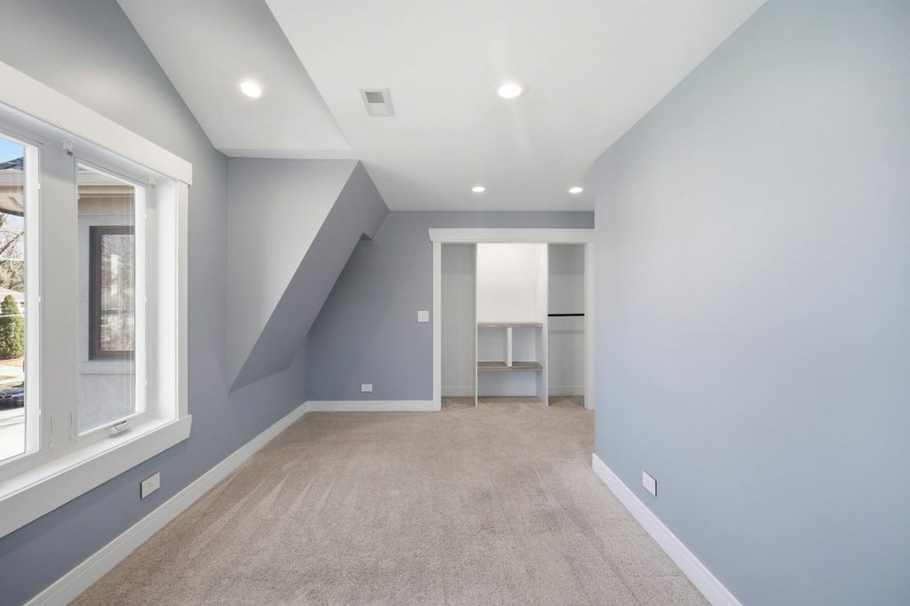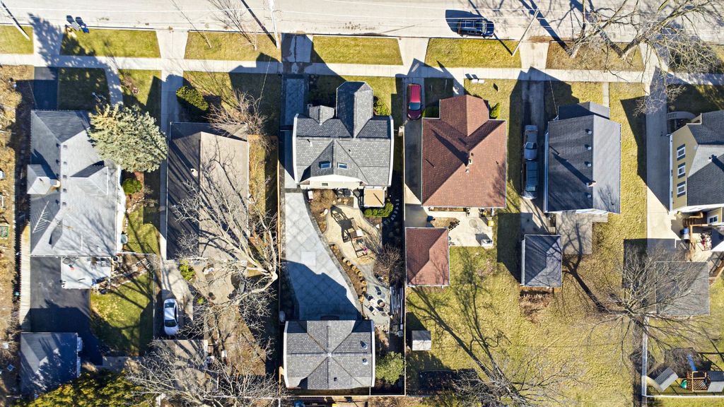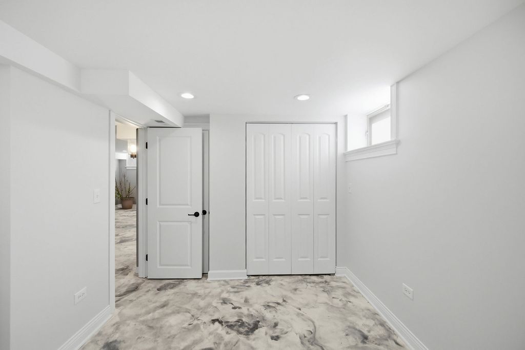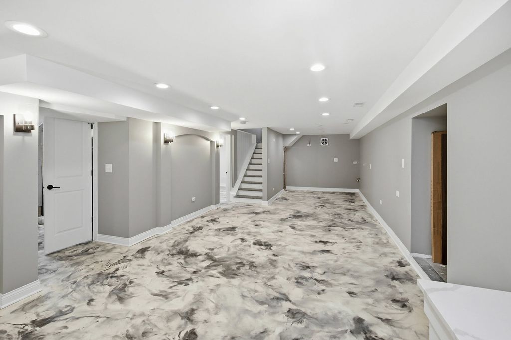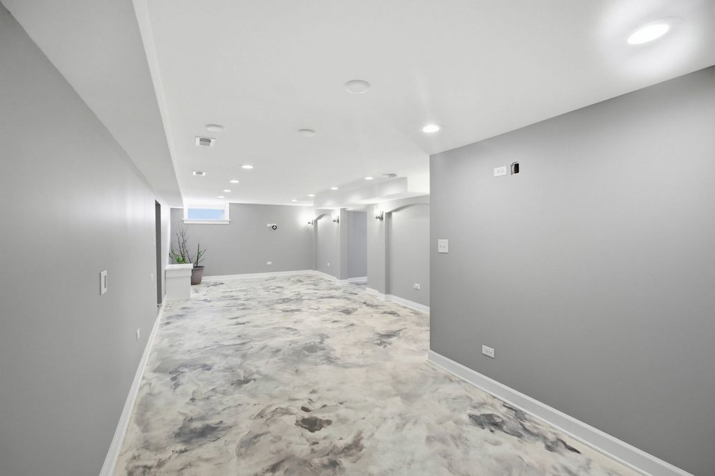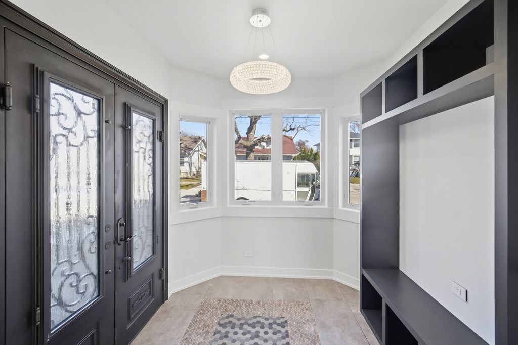 Completely rebuilt from the original concrete foundation, this exceptional home offers modern design, high-end craftsmanship, and thoughtful upgrades throughout. The open-concept main level features custom hardwood floors, a designer kitchen with quartz countertops, farm sink, peninsula, pantry, and stainless steel appliances, plus a first-floor bedroom and full bath for added convenience. Upstairs, the luxurious primary suite boasts a soaring cathedral ceiling, spa-inspired bathroom with marble finishes, automatic skylights, double floating vanity, and an oversized custom shower with body sprays, rain shower, and bench. Additional living spaces include a guest room, seating area with vaulted ceilings, and elegant glass railings. The finished basement adds valuable living space with epoxy floors, laundry room, and a full bathroom ready for finishing touches with rough in plumbing. Step outside to enjoy a beautifully designed exterior featuring a stamped concrete driveway with heated snow-melt system, custom electronic keypad gate, custom landscaping with irrigation system, deck, and private yard. The home is complete with Andersen windows, custom millwork, 200-amp electrical service, high-efficiency dual a/c and furnace systems(2019), and durable 50-year roofing. Most done with in the last 10yrs. A rare highlight is the nearly completed detached 2 story 2.5-car coach garage with 10' ceilings, heated floors, independent HVAC system, and a almost finished studio above-ideal for guest living or workspace-with rough plumbing for a bathroom and wet bar already in place. This one-of-a-kind property blends luxury, functionality, and modern design-truly move-in ready with incredible potential. A must see!!