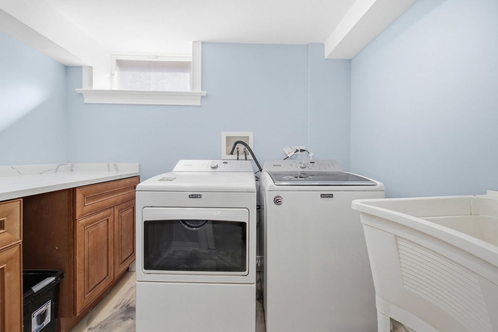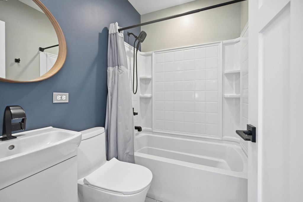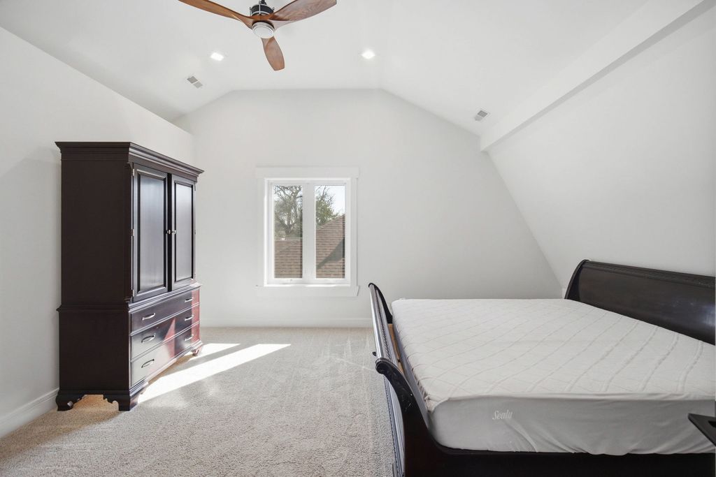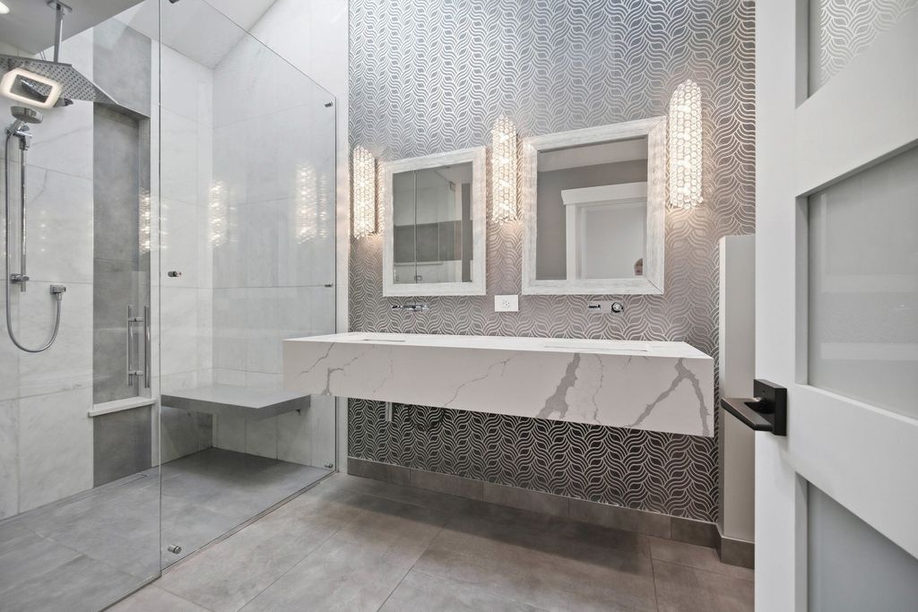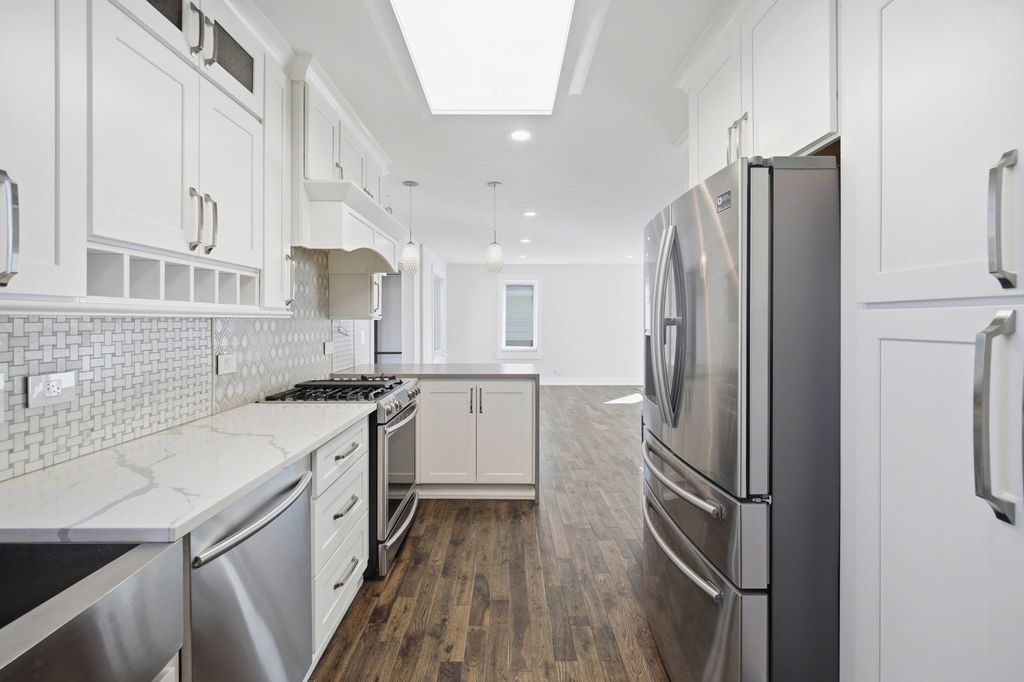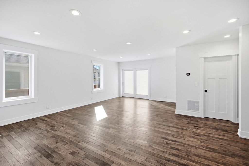 Completely rebuilt from the original concrete foundation, this exceptional home offers modern design, high-end craftsmanship, and thoughtful upgrades throughout. The open-concept main level features custom hardwood floors, a designer kitchen with quartz countertops, farm sink, peninsula, pantry, and stainless steel appliances, plus a first-floor bedroom and full bath for added convenience. Upstairs, the luxurious primary suite boasts a soaring cathedral ceiling, spa-inspired bathroom with marble finishes, automatic skylights, double floating vanity, and an oversized custom shower with body sprays, rain shower, and bench. Additional living spaces include a guest room, seating area with vaulted ceilings, and elegant glass railings. The finished basement adds valuable living space with epoxy floors, laundry room, and a full bathroom ready for finishing touches with rough in plumbing. Step outside to enjoy a beautifully designed exterior featuring a stamped concrete driveway with heated snow-melt system, custom electronic keypad gate, custom landscaping with irrigation system, deck, and private yard. The home is complete with Andersen windows, custom millwork, 200-amp electrical service, high-efficiency dual a/c and furnace systems(2019), and durable 50-year roofing. Most done with in the last 10yrs. A rare highlight is the nearly completed detached 2 story 2.5-car coach garage with 10' ceilings, heated floors, independent HVAC system, and a almost finished studio above-ideal for guest living or workspace-with rough plumbing for a bathroom and wet bar already in place. This one-of-a-kind property blends luxury, functionality, and modern design-truly move-in ready with incredible potential. A must see!!
